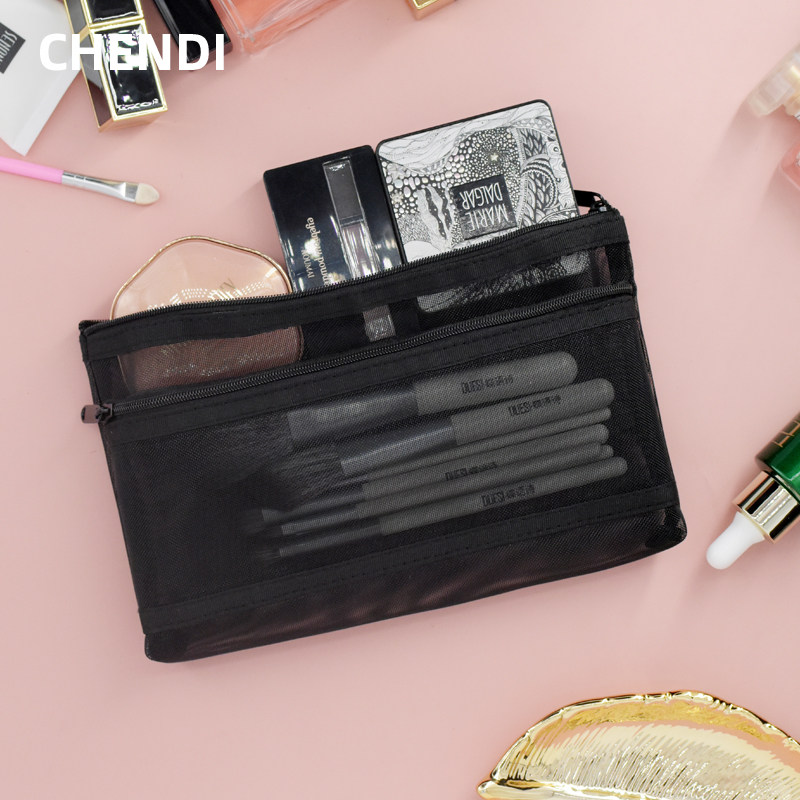 Portable travel makeup brush containing bag mesh yarn professional female mouth red bag large capacity air cushion cloth bag brushed supplement makeup bag