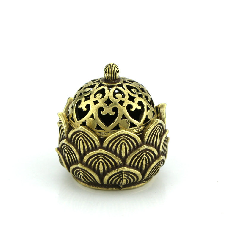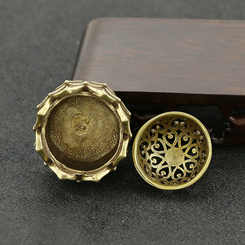 Mini lotus hollow brass small incense burner ornaments brass micro carving small copper stove handle antique bronze bronze carving