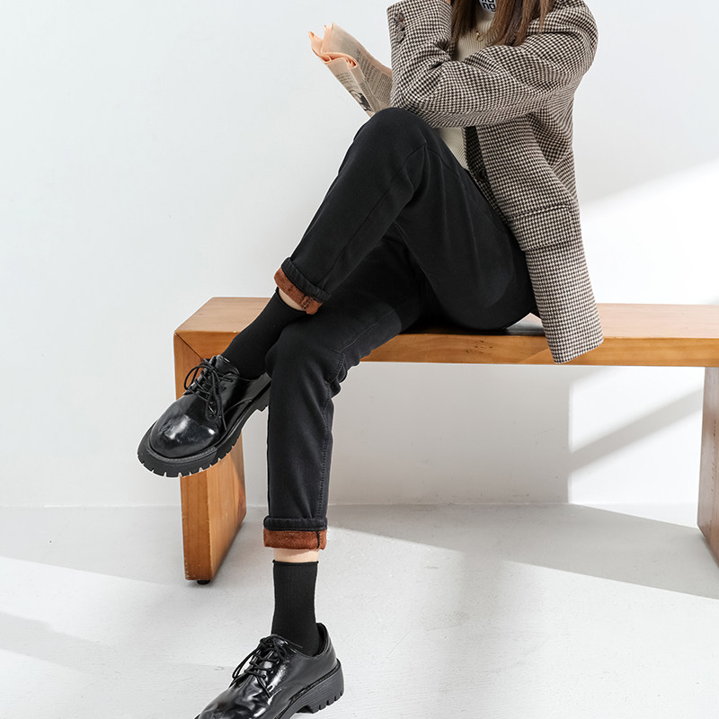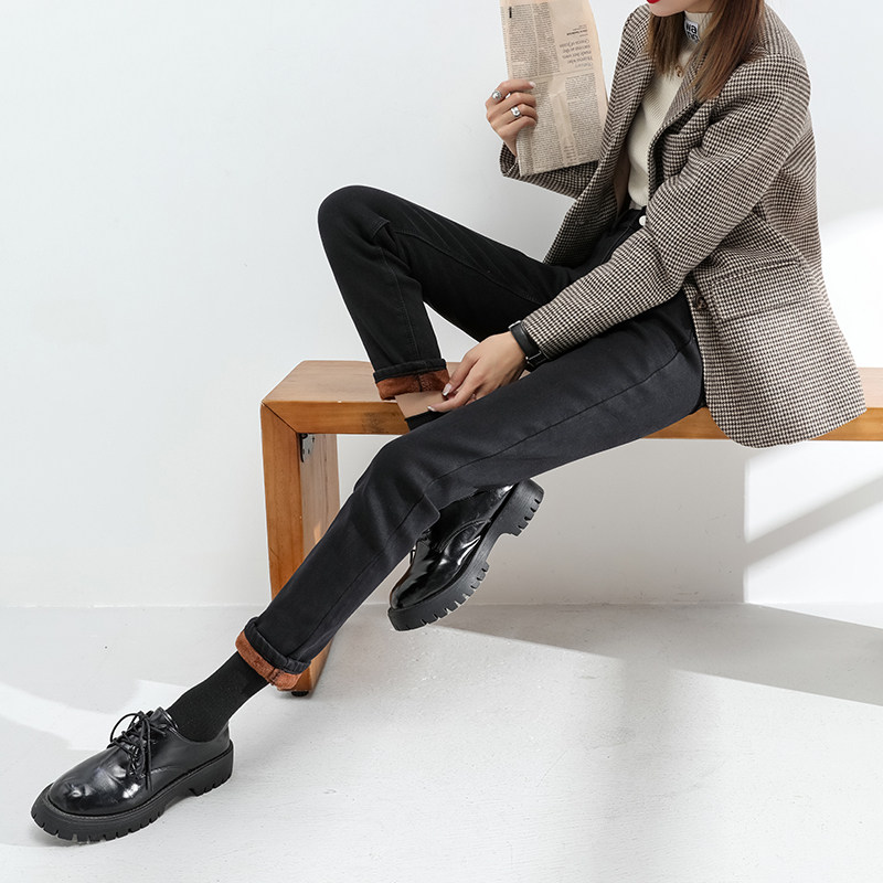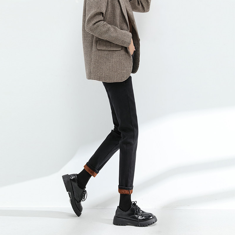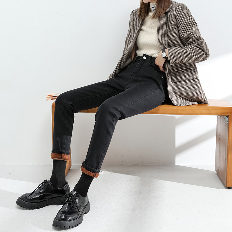 Plus velvet jeans women's loose straight autumn and winter 2022 new high-waisted thin and thick nine-point cigarette pipe cigarette pipe pants