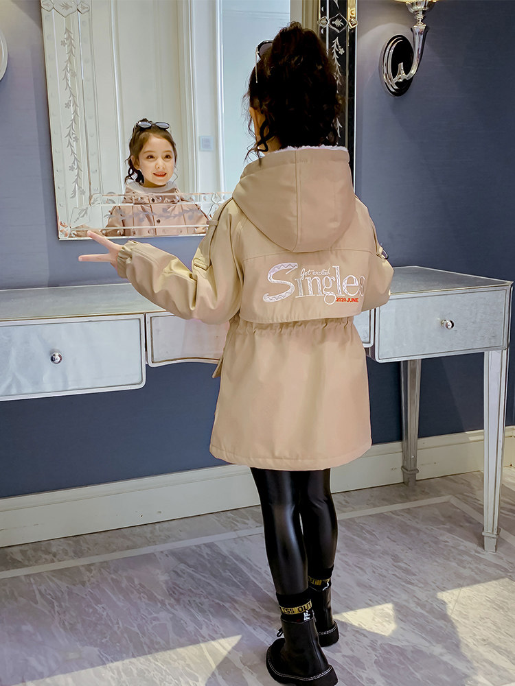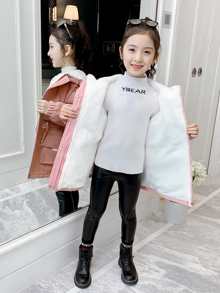 Girl coat autumn and winter 2021 new children's winter clothes cotton clothes girl foreign style plus velvet thickened winter Parker clothing winter