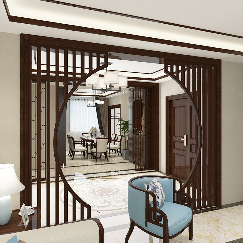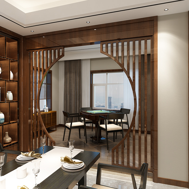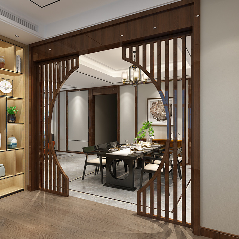 Modern new Chinese style solid wood moon hole door screen living room compartment study bedroom fence entry door against the wall to block the decoration