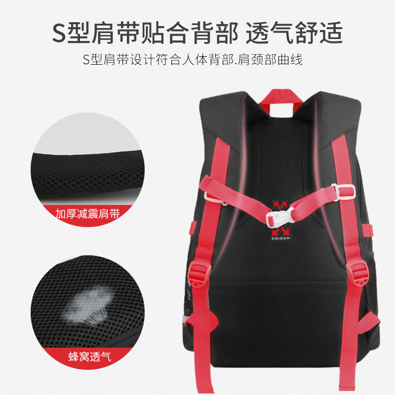 Edison school bag primary school students three, four, five, six grade lightweight load-reducing backpack for boys Protective crest waterproof backpack for men