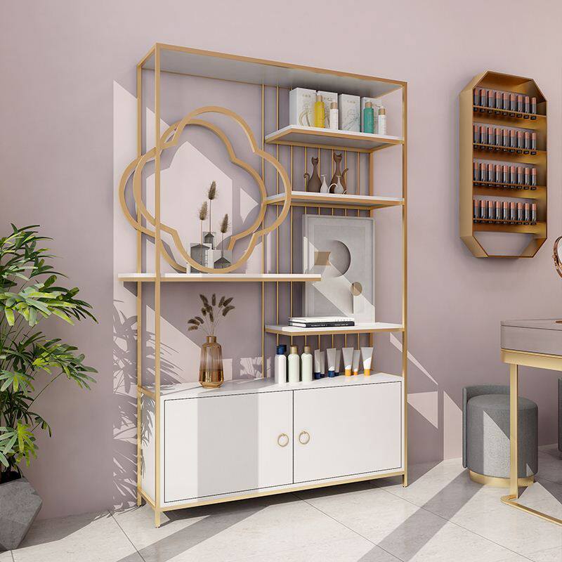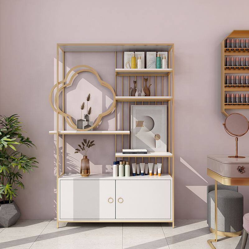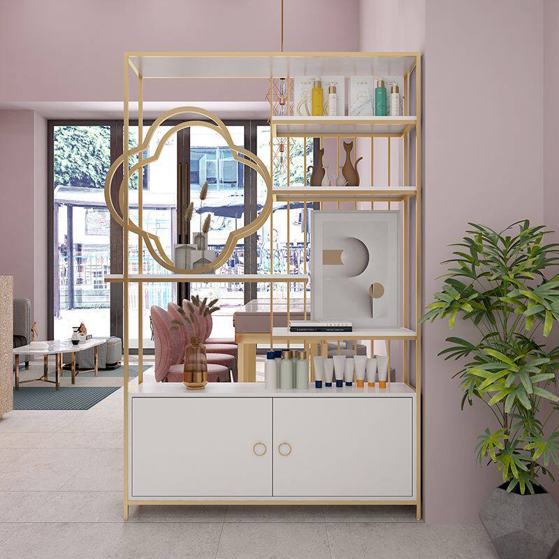 Light luxury beauty salon partition shelf cosmetics display stand nail shop landing porch bookshelf wrought iron shelf
