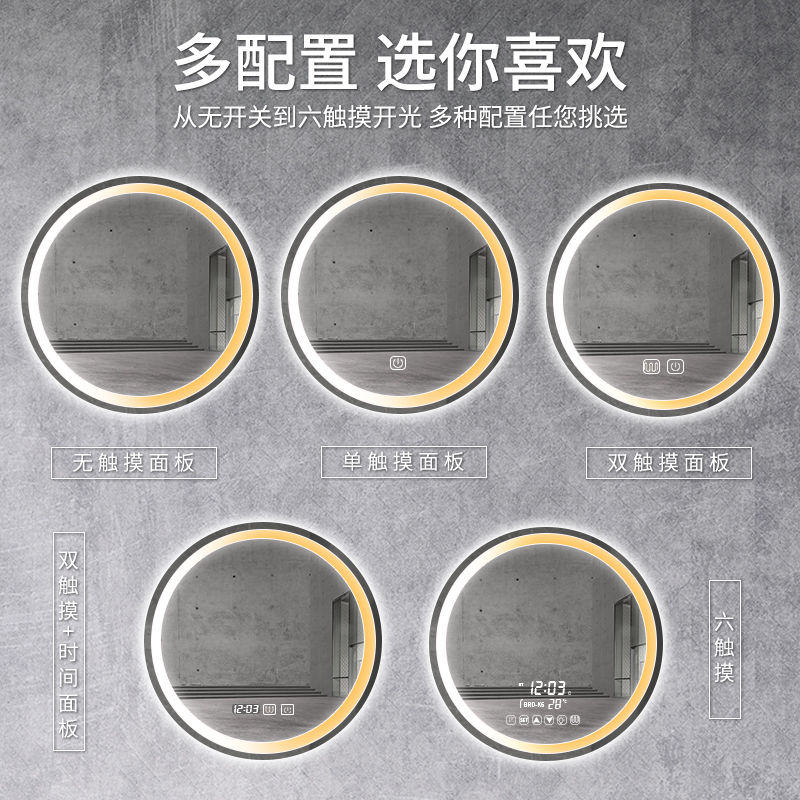 Round mirror luminous smart bathroom mirror toilet dresser wall hanging round with light touch screen anti-fog LED mirror