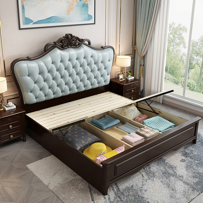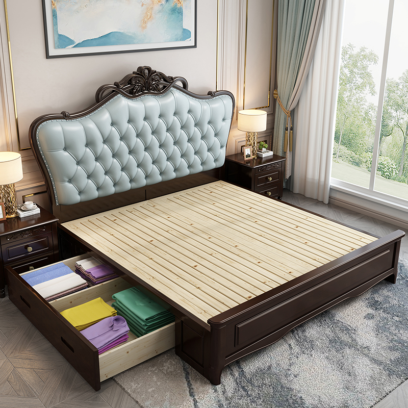 American light luxury solid wood bed master bedroom double bed 1 8 modern 1 5 meters princess oak European style big bed upholstered wedding bed