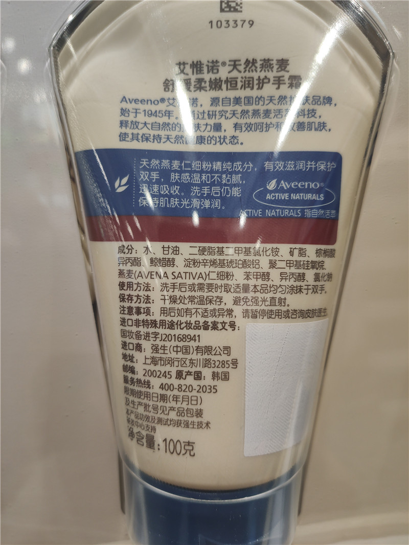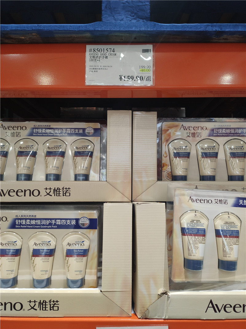 Shanghai Costco open city Guest domestic Aveeno Ai Weibo natural oat moisturizing hand cream 100G* 4