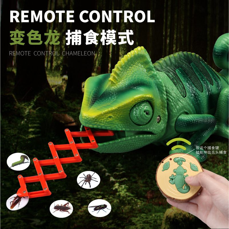 Remote-controlled electric simulation dinosaur chameleon pet animal spitting tongue eating insect mosquito big children's toys