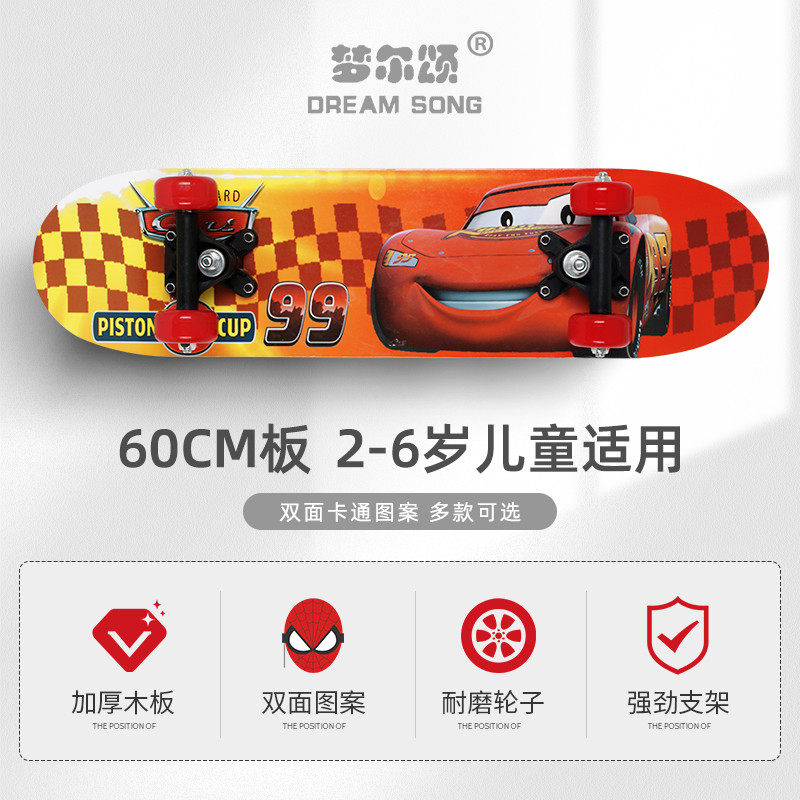 Children's four-wheel skateboard beginner 60 cm long scooter double-turned boy skateboard cartoon princess spiderman
