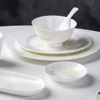 Hotel supplies hotel ceramic table Table tableware set dining room clubhouse glaze color bone china dish bowl Chinese style 1 person 9 pieces