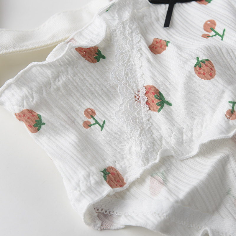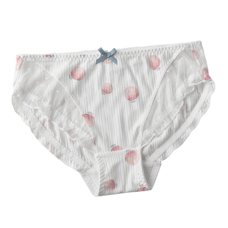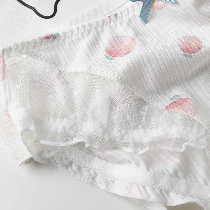 Peach strawberry cotton underwear girl cute cartoon lace fungus edge ladies mid-waist cotton antibacterial briefs