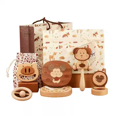 Wood art dad newborn baby toy gift box full moon meeting gift 100 days gift baby 3-6-12 months can bite