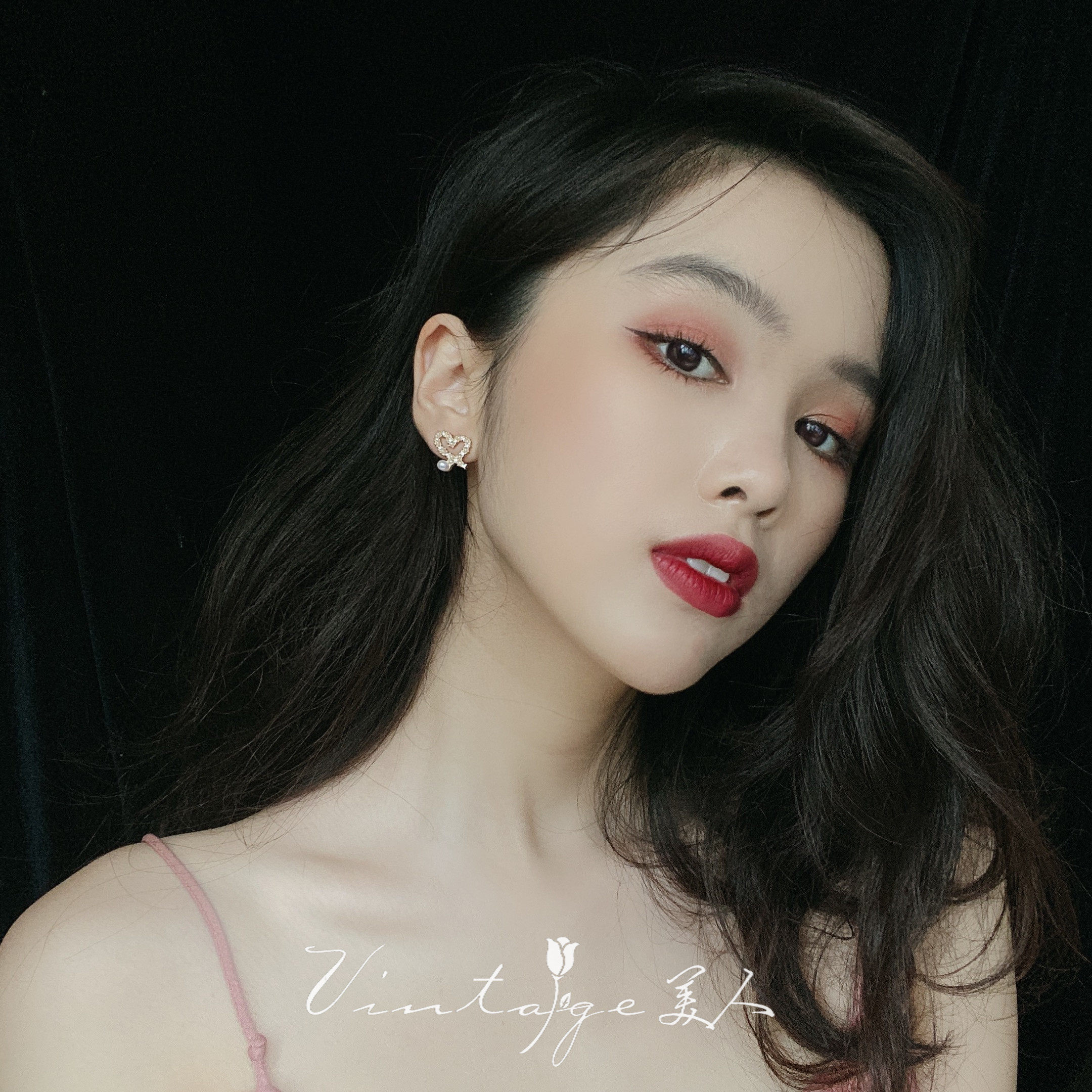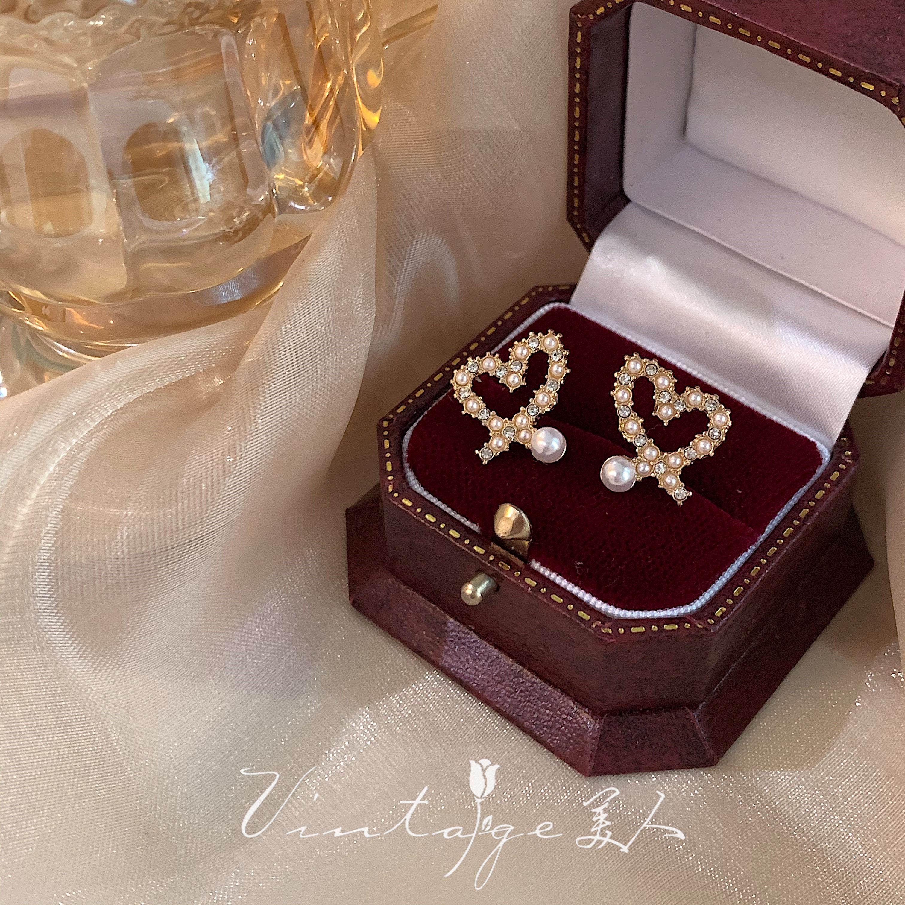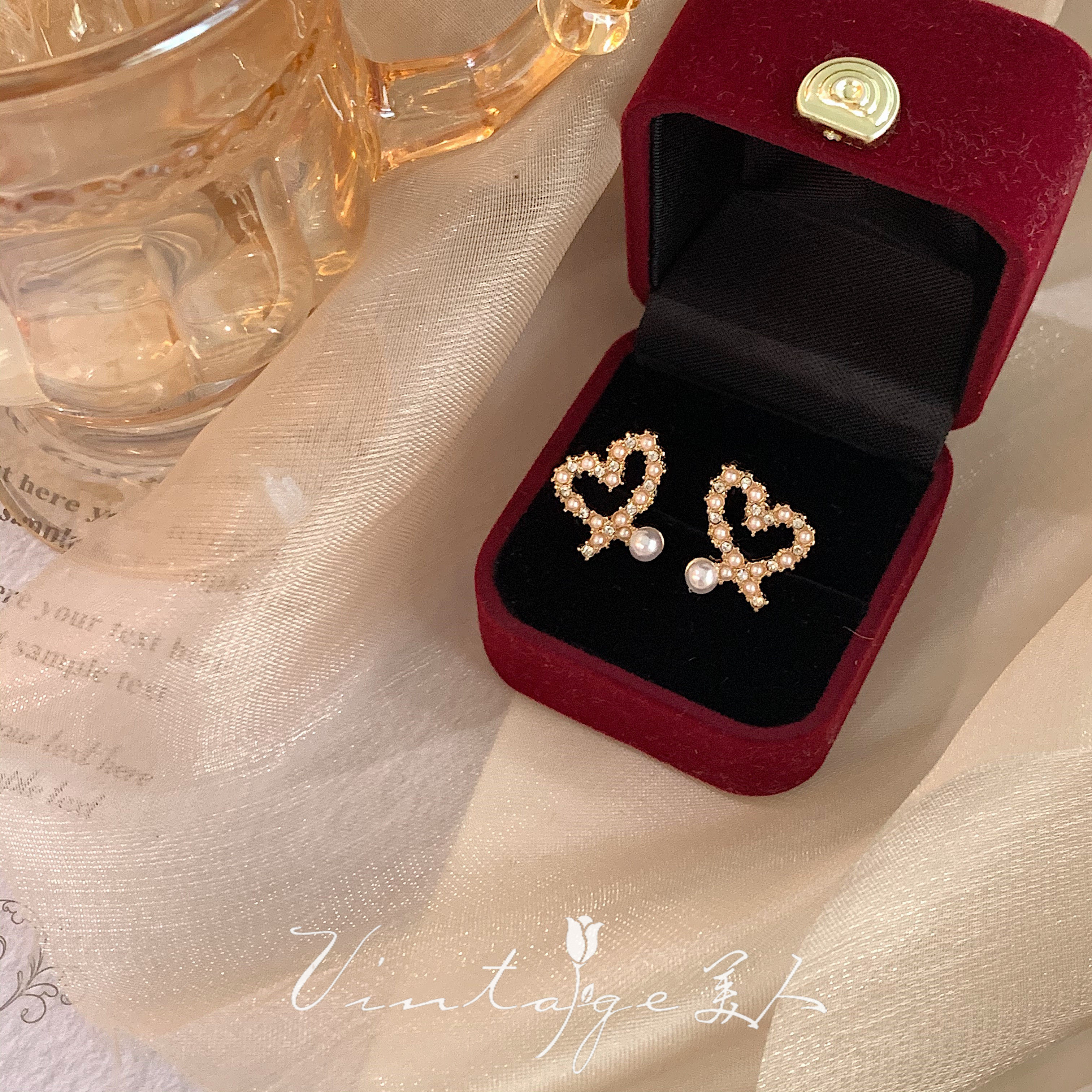 "To Alice" ins-style design, exquisite diamond-encrusted temperament, asymmetrical love pearl earrings, ear clips
