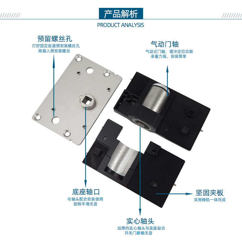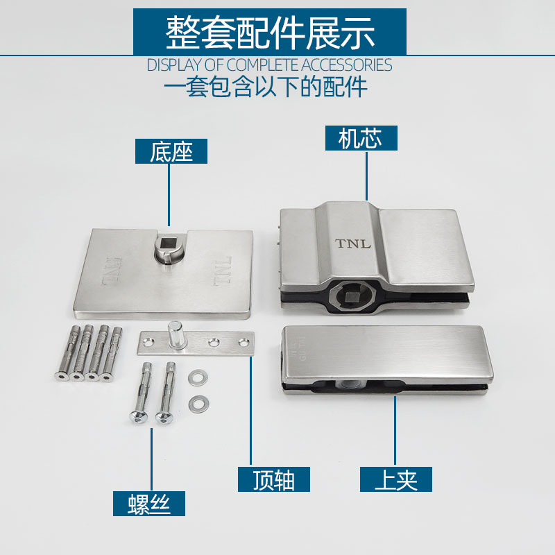 Solid titanium groove-free floor spring hidden frameless tempered glass door floor spring with weighted 90-degree positioning floor spring