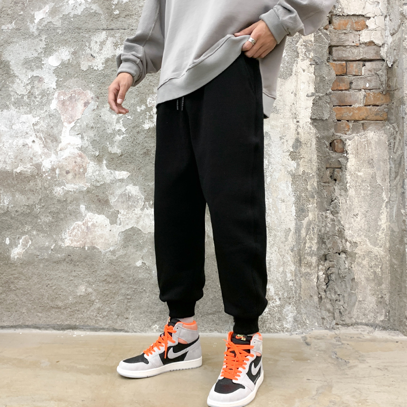 Lamb Suede Pants Men Plus Suede Thickened Winter Outwear Sports Pants Loose Bunch Foot Tide Casual Autumn Winter Sweatpants-Taobao