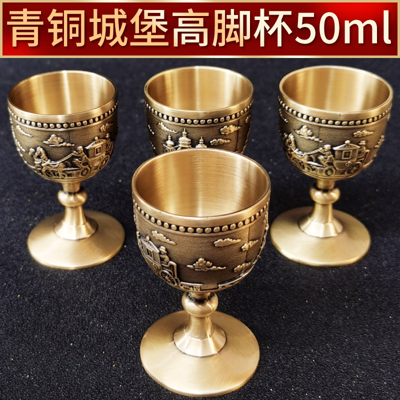 Metal wine glass one or two liquor bottles household small tall wedding toast glass decorative ornaments bronze spirits glass