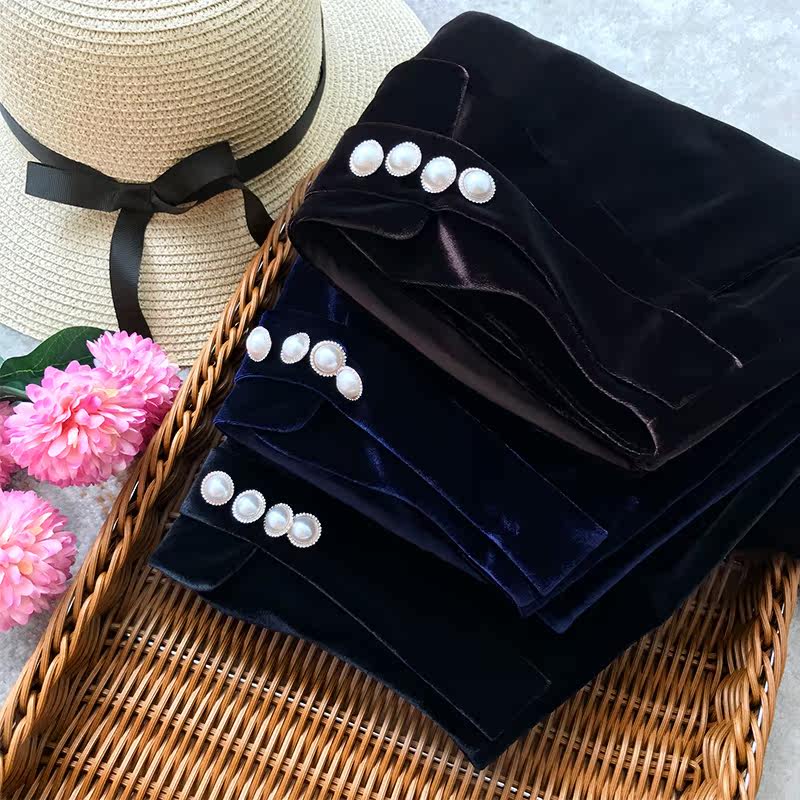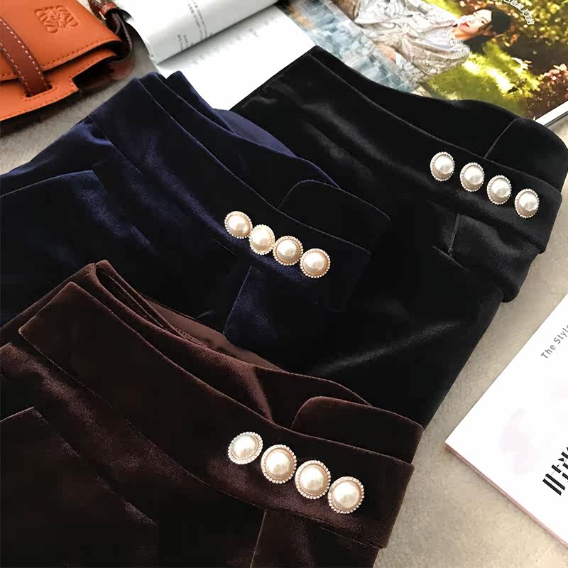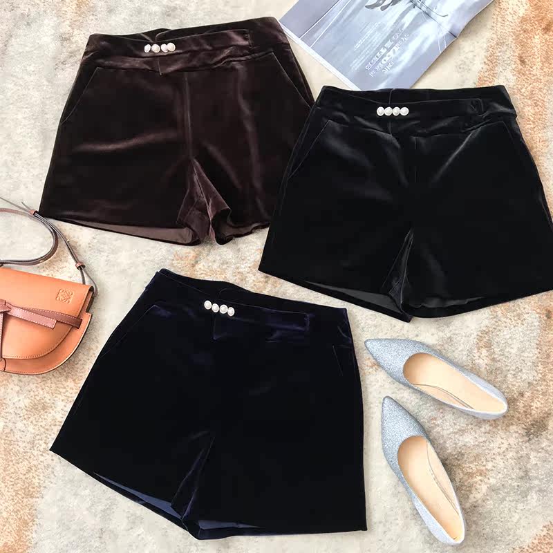 Unprecedented Korean imported gold velvet high-waisted wide-leg shorts women's autumn and winter loose outer wear boots and pants