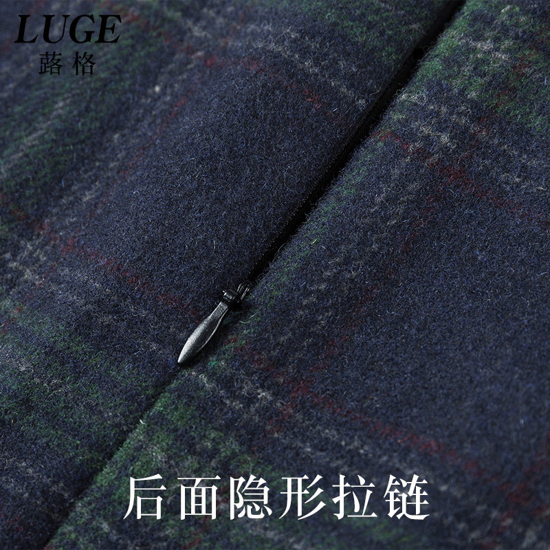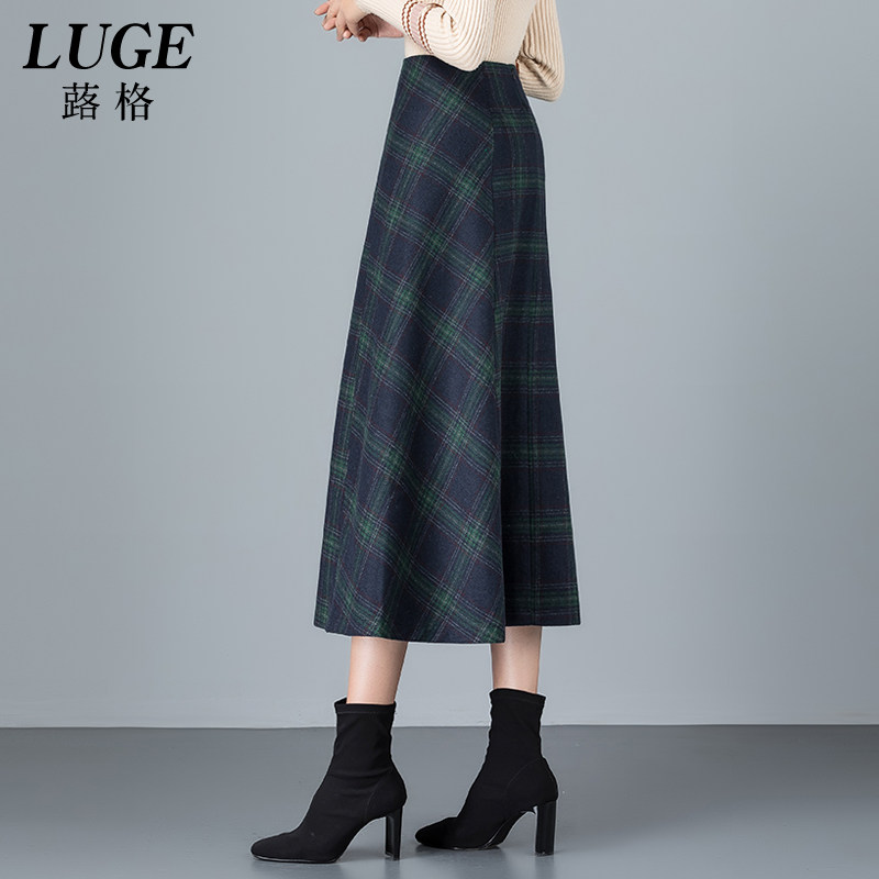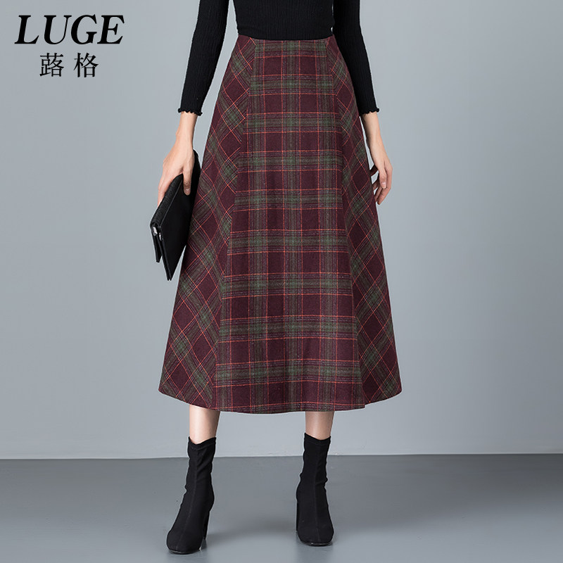 Hairy plaid half body skirt autumn winter medium long version female new high waist a dress with large size to thicken winter wool dresses