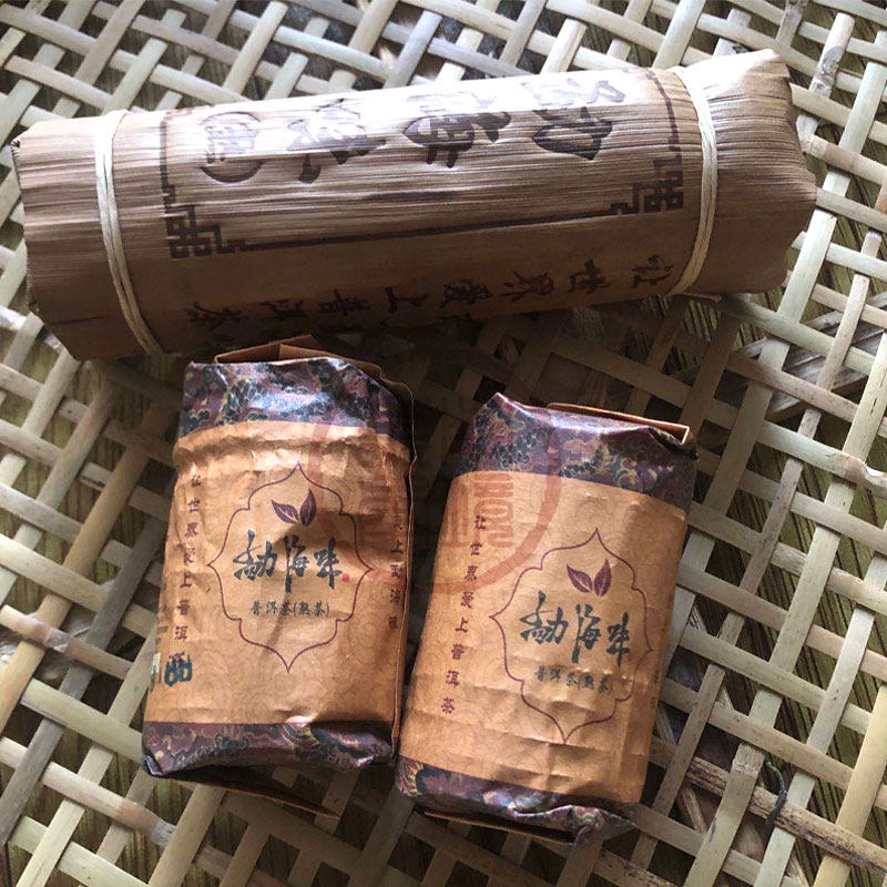Yunnan Menghai flavor Pu'er cooked tea small tea column tea cake Bamboo shell packaging 24 pieces of small cake 192g spot