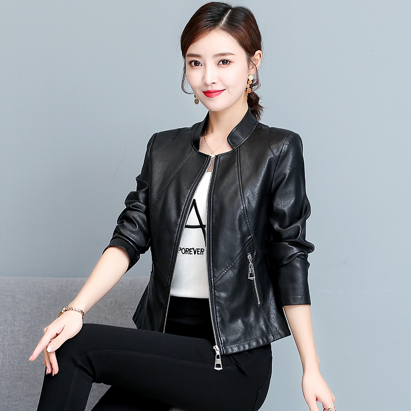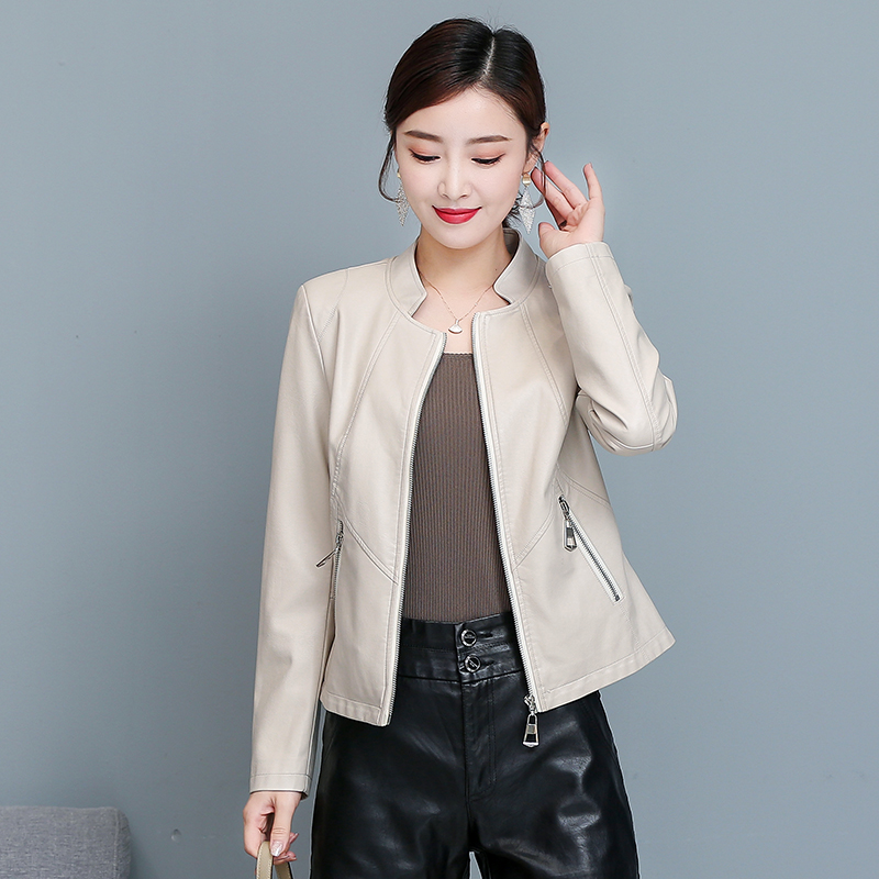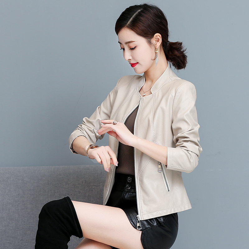 2021 Spring and autumn new Heinin fur coat female short jacket Korean version with slim collar locomotive leather jacket tide