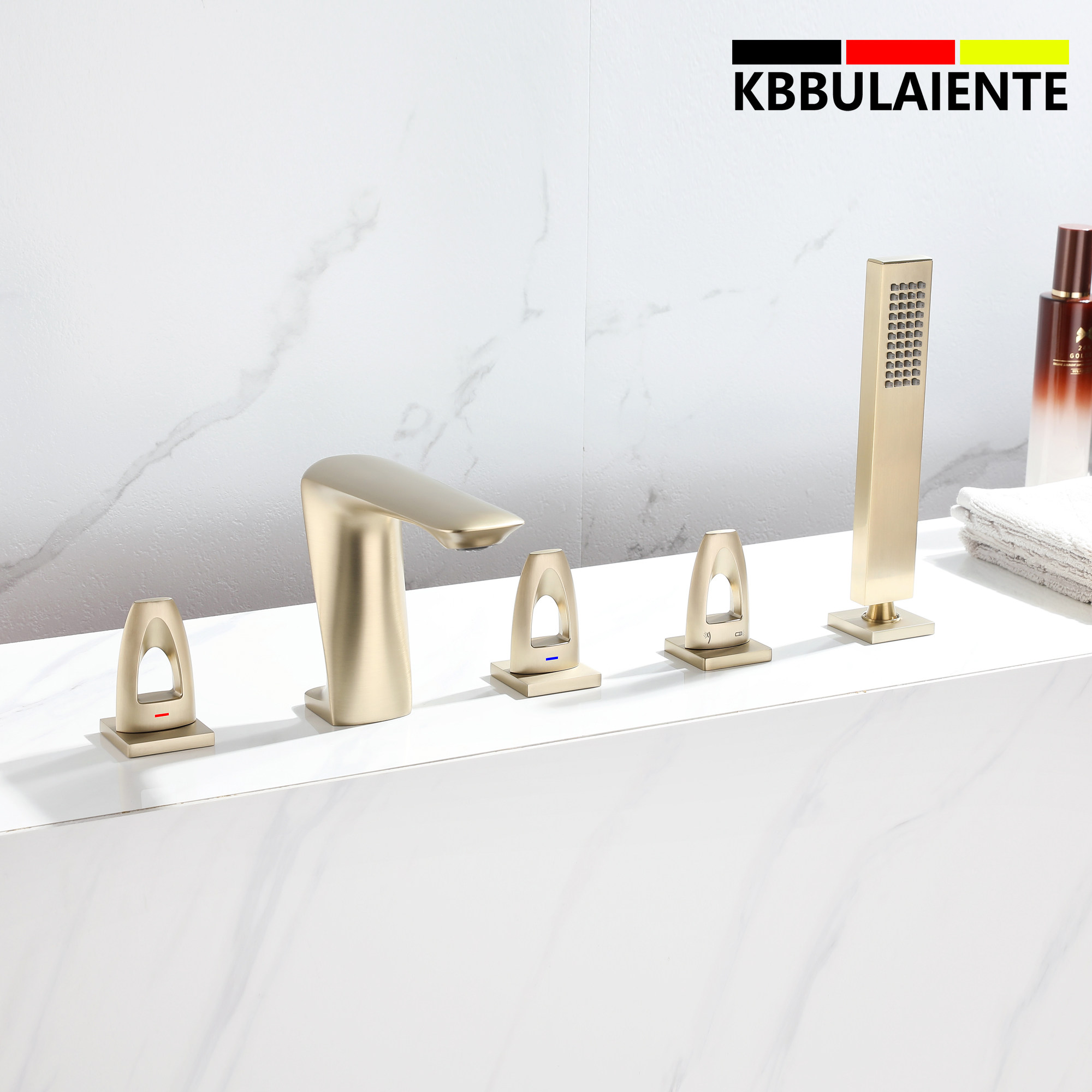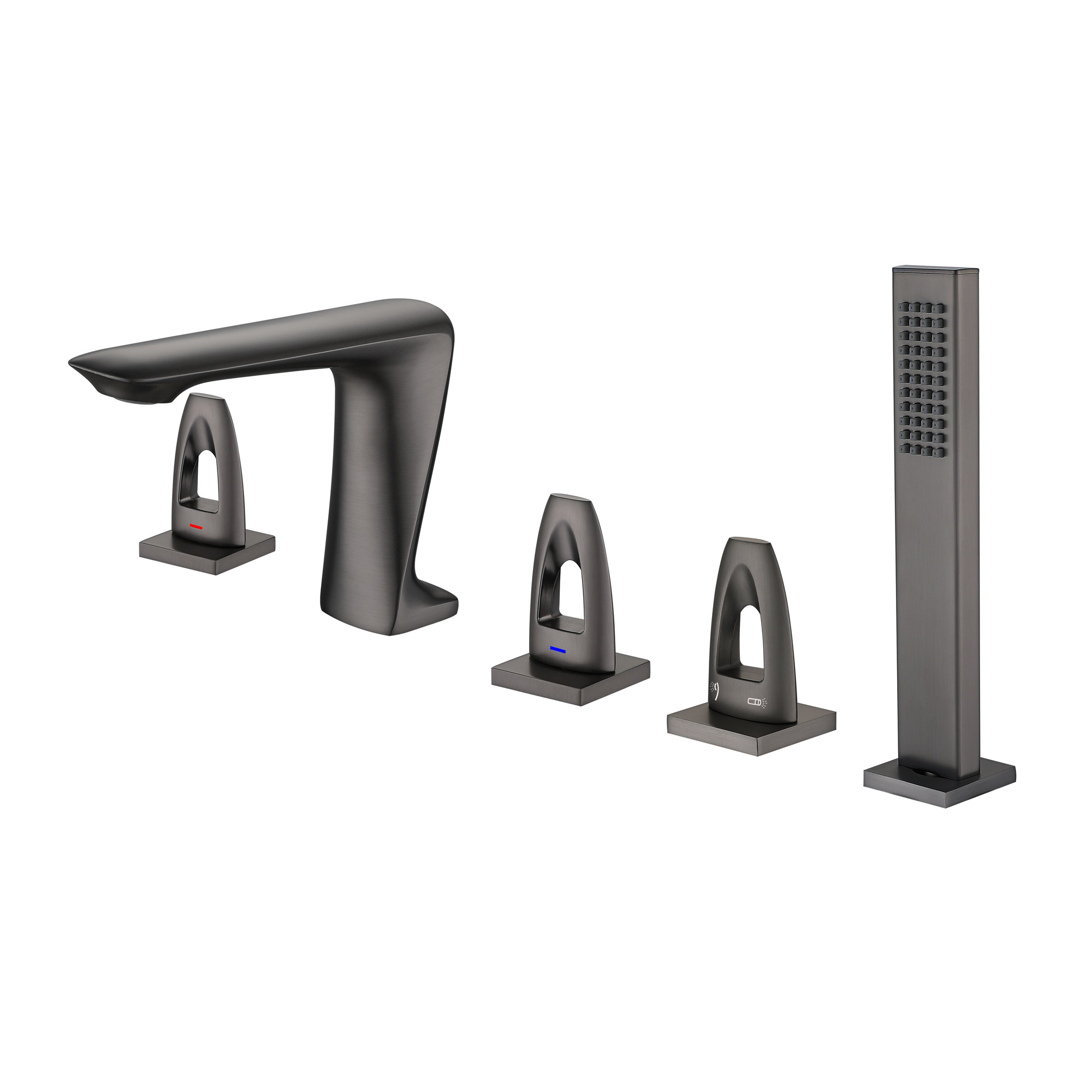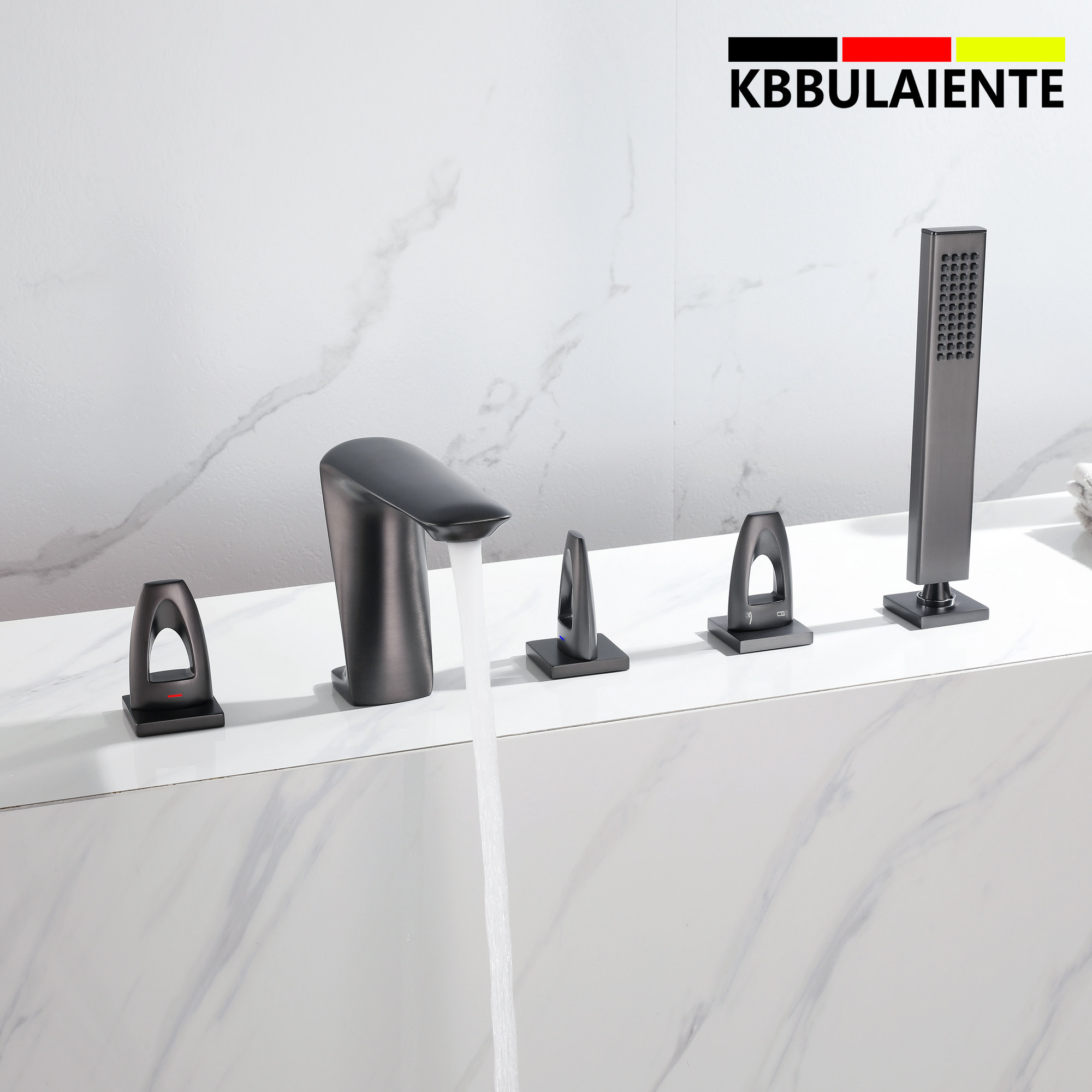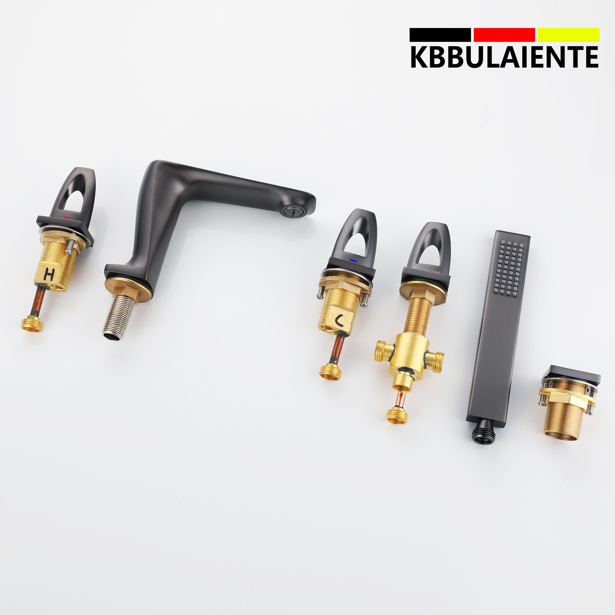 German fine work light lavish gun grey five pieces of black full copper bathtub tap Two-type hot and cold wire drawing gold tap