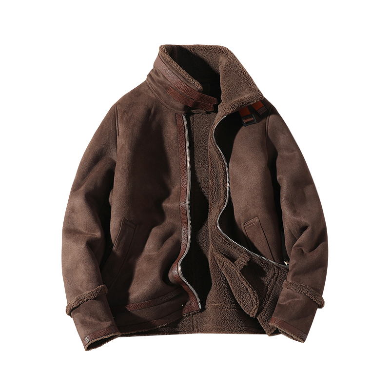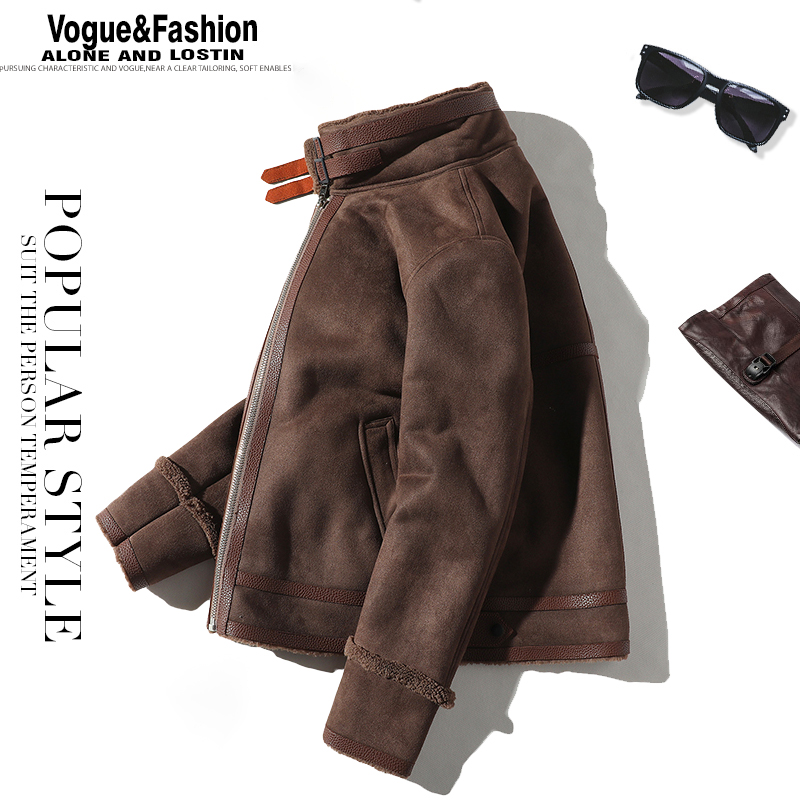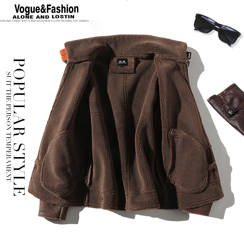 Men's fur one-piece jacket Autumn and winter fashion velvet thickened coat Korean version of the trend brown lamb wool men's clothing