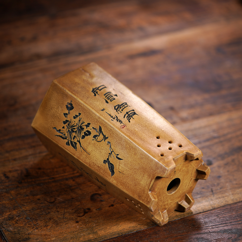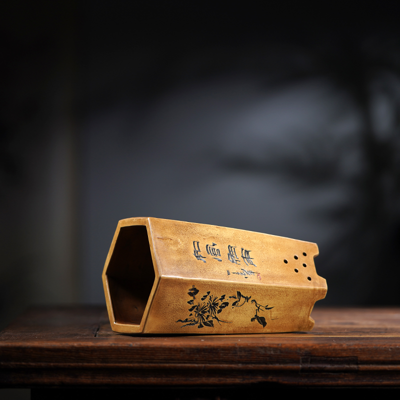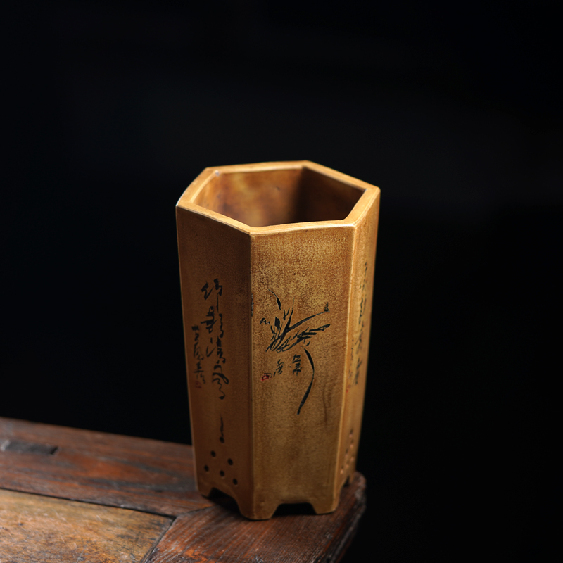 Taiwan Reflux of Purple Sand Flower Pots all-handmade hexagonal old section Clay Hexagonal Eland Flower Pot's Carved Bouquets of Flower Pots-Taobao