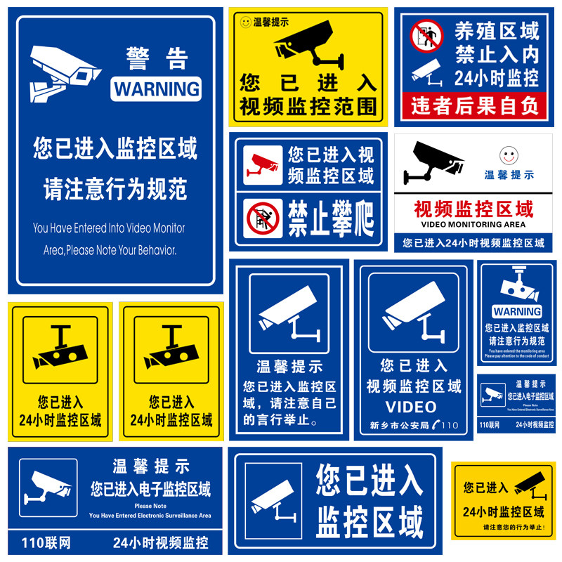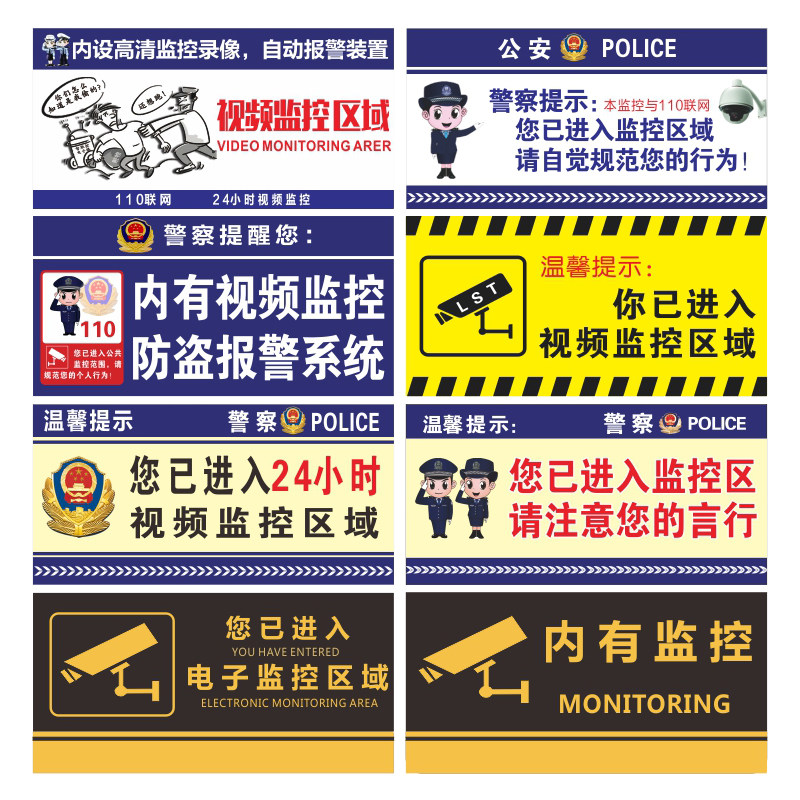 You have entered the 24-hour area indication sign warning sign Video surveillance sign Aluminum plate sign Police warning sign