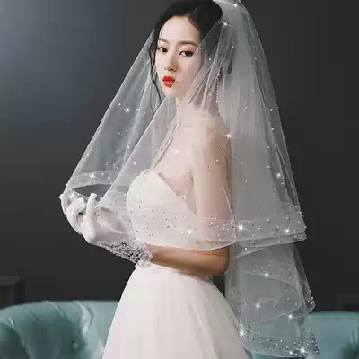 Head yarn bridal headdress Super fairy son Net red photo props main wedding veil sparkling starry sky veil short