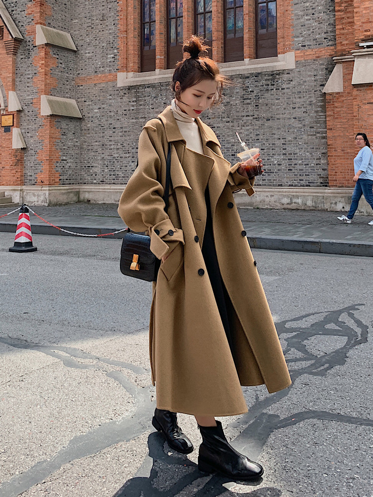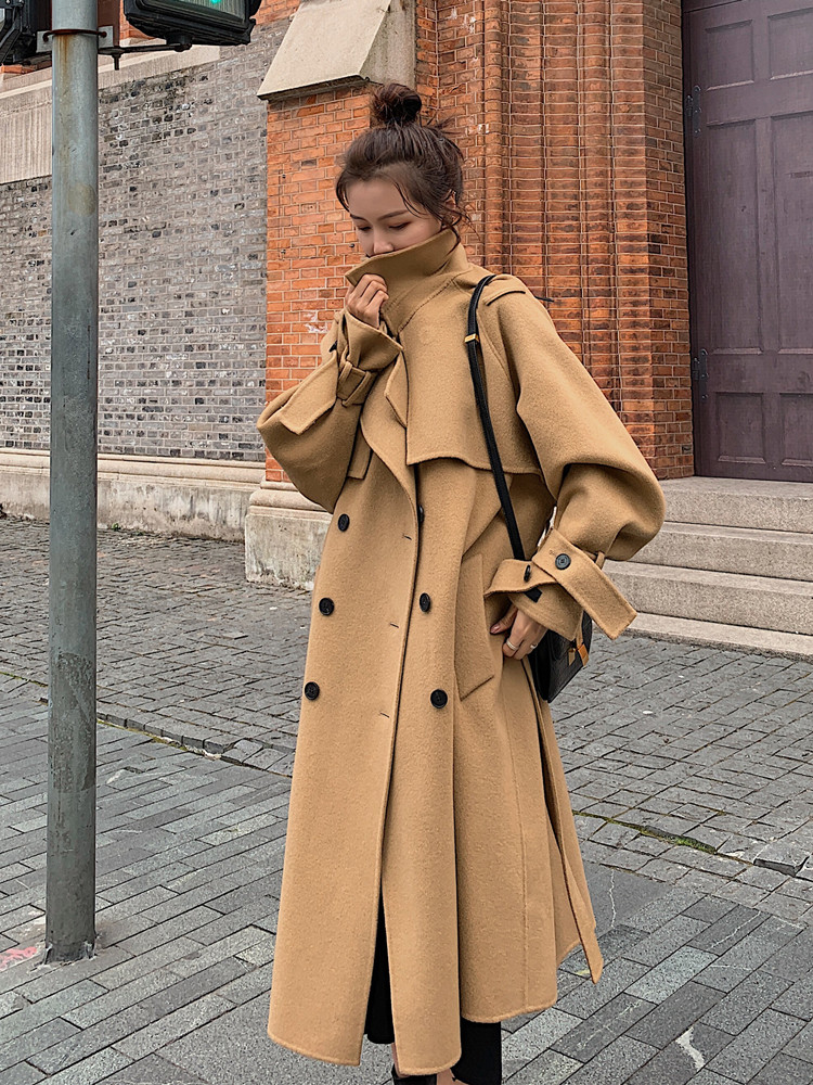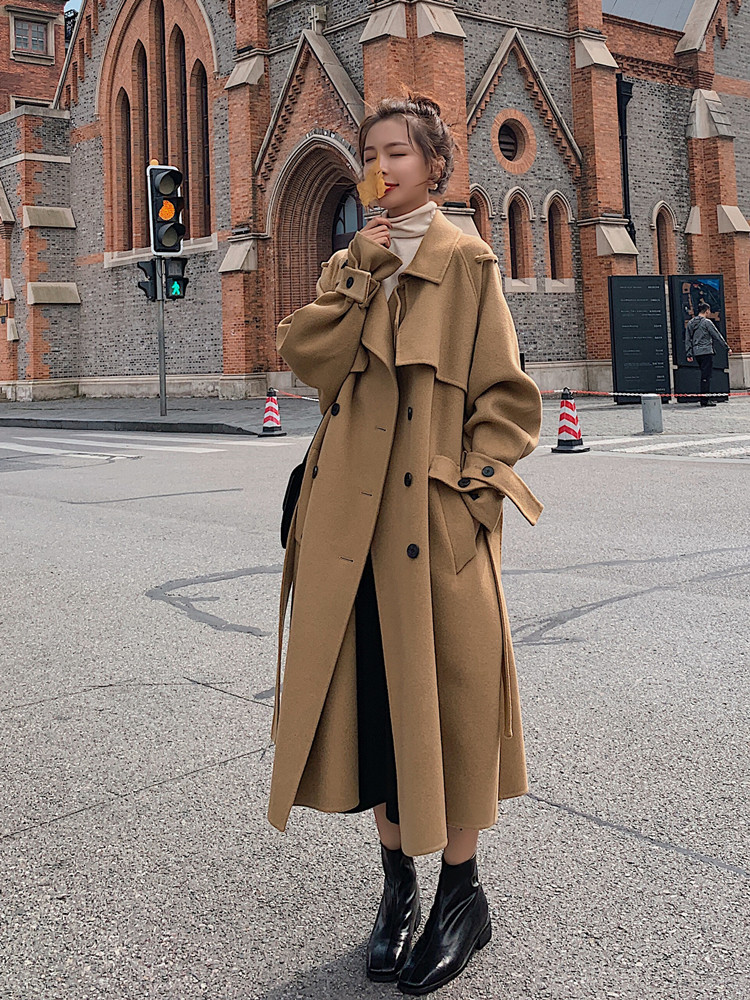 Lecea Alice woolen coat women's 2022 winter new Hepburn style mid-length loose woolen coat