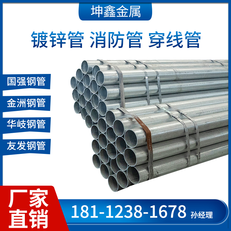 Galvanized steel pipe hollow round pipe 6 meters DN20DN25DN100 hot dip galvanized 32mm threading pipe 4 points 6 points fire pipe