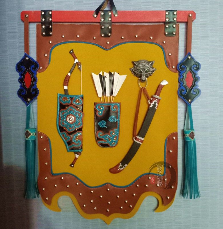 Mongolian leather painting yurt ethnic elements decoration Genghis Khan dining room restaurant wall mural three-dimensional craft hanging painting