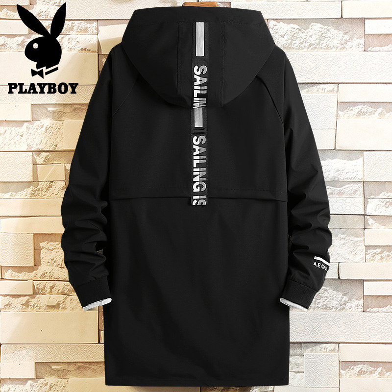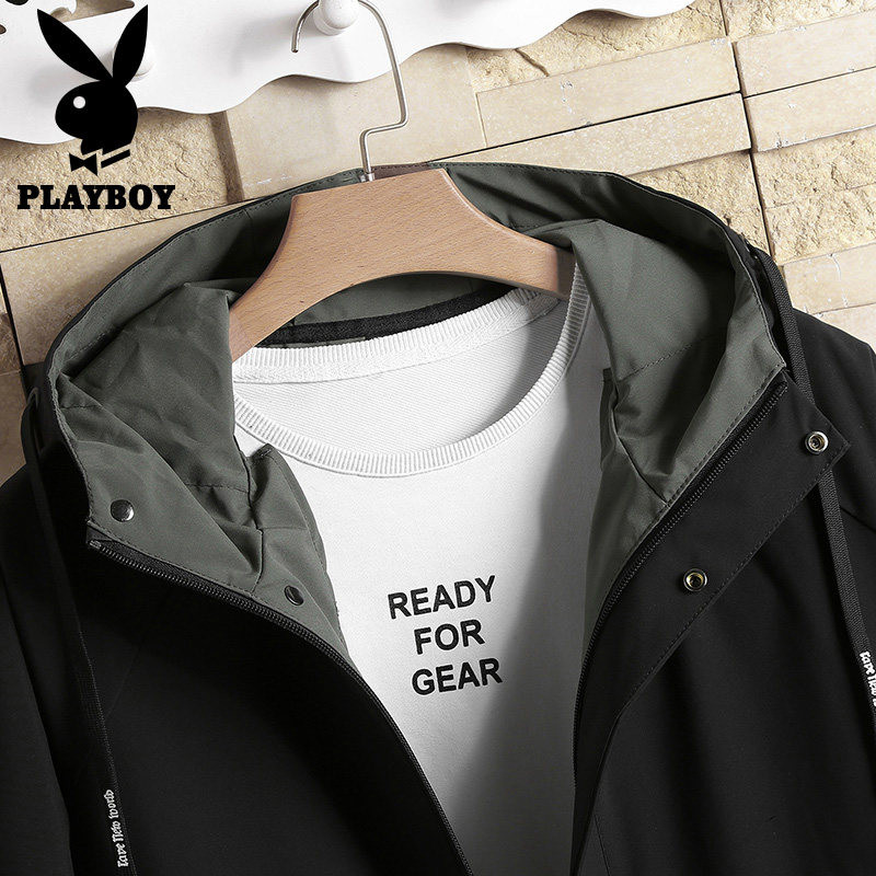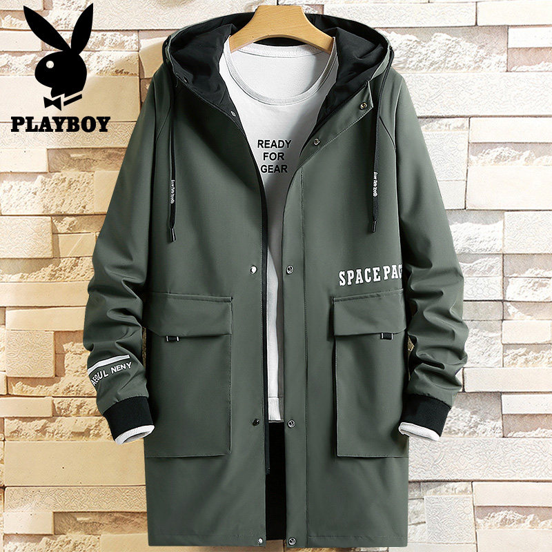 Flowers Playboy with cap windsuit men in the middle of a long style Tide Handsome Autumn Coat Jacket Jacket Men's Spring and Autumn Festival-Taobao