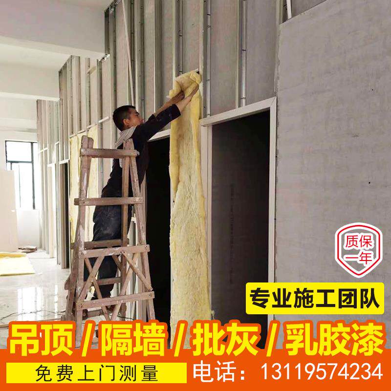 Gypsum board partition wall partition sound insulation light steel keel mineral wool board ceiling Guangzhou shopping mall office factory contract labor and materials