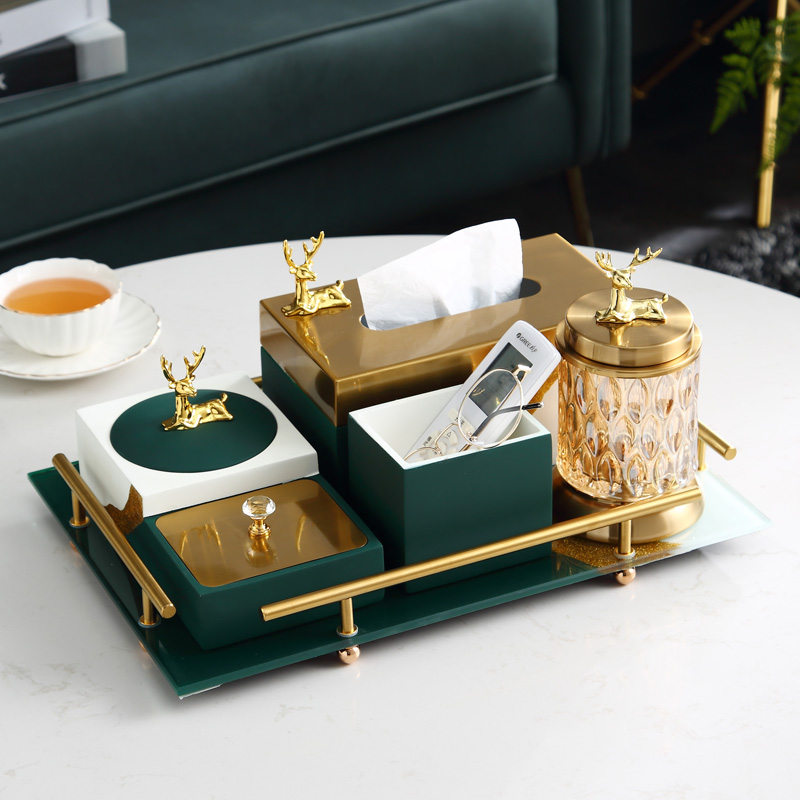 Ink Green Five Pieces (Tissue Box Smoking Ash Trays Glass Storage Tank Containing Box) Ink Green Glass Nursery Ink Green Tissue Box Ink green multifunction Ashtray Small glass vase ink