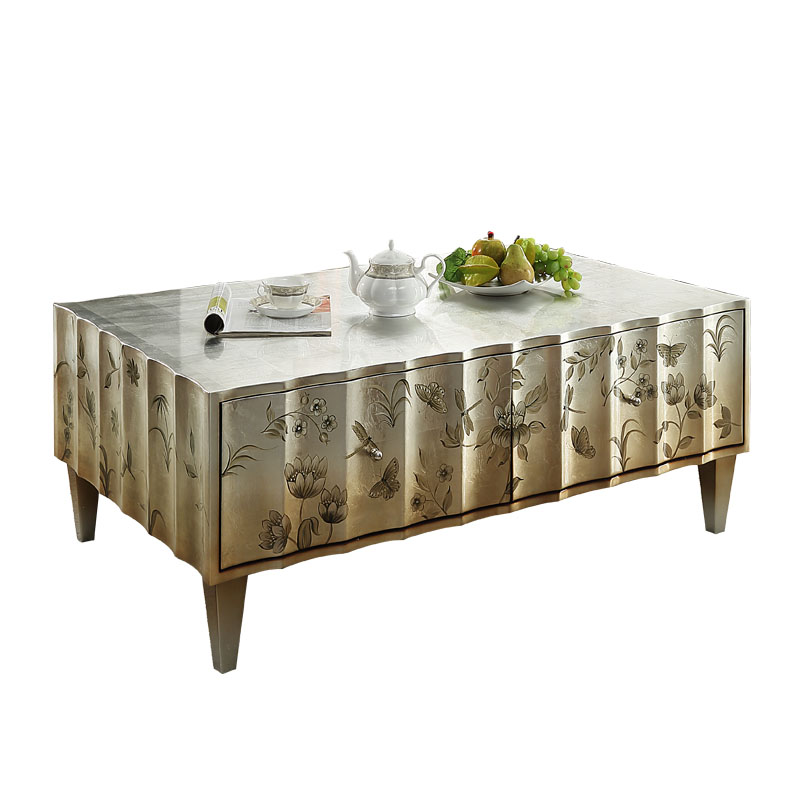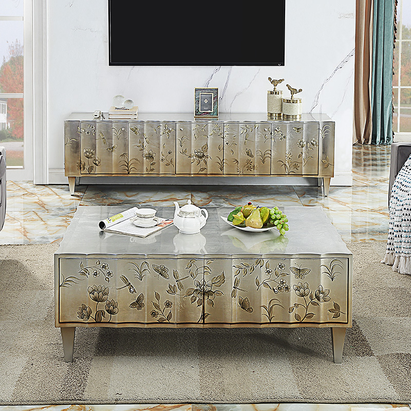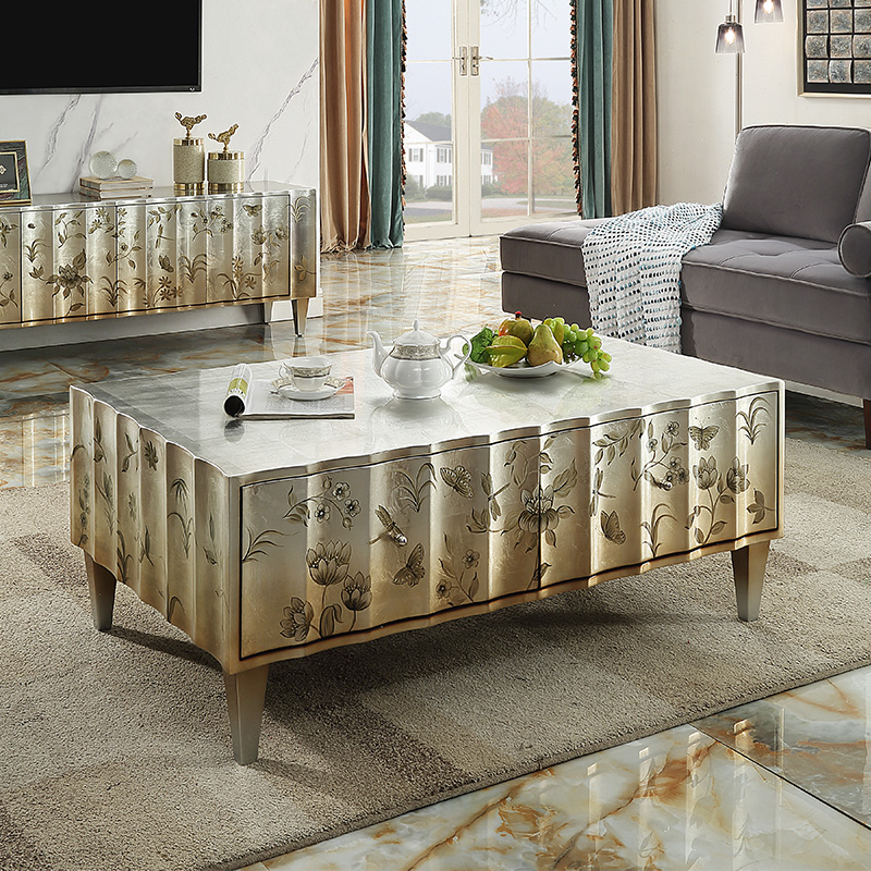Light luxury style coffee table modern furniture paint carving multi-functional locker non-retractable self-contained villa living room cabinet