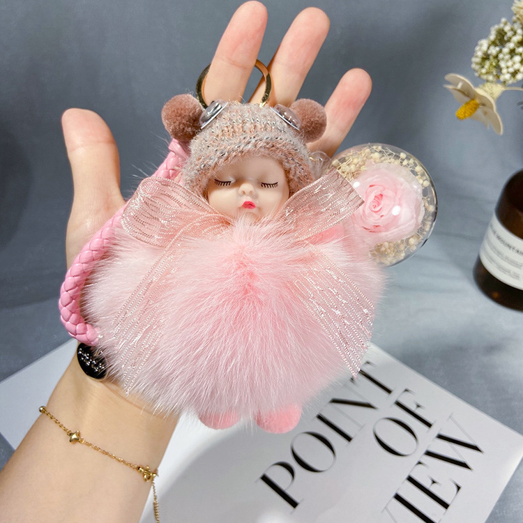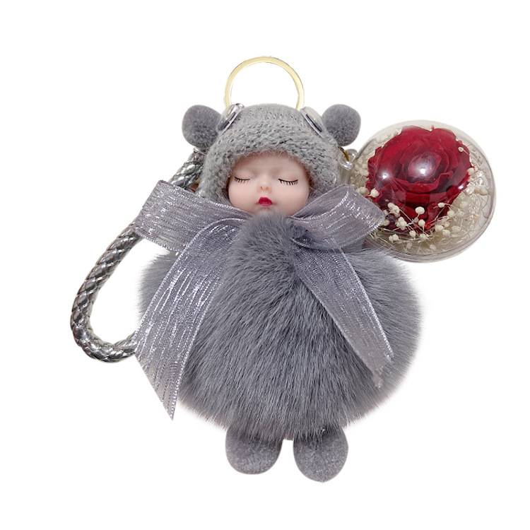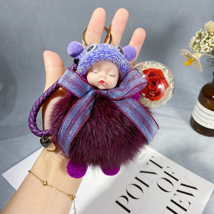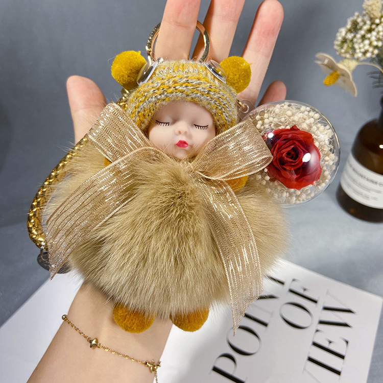 Japan and South Korea bow soft cute doll keychain cute fox fur doll rose immortal flower accessories gift ideas