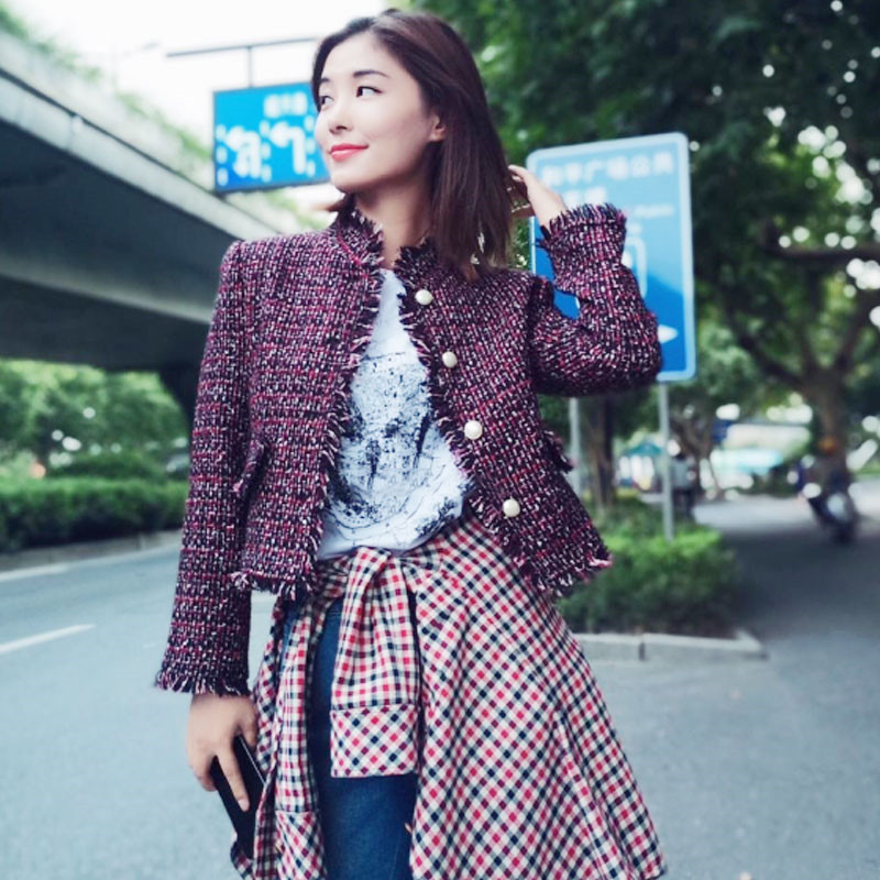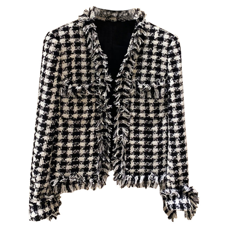 Oamashi women's clothing 2023 spring and autumn new counter official website tassel small fragrance houndstooth short coat female