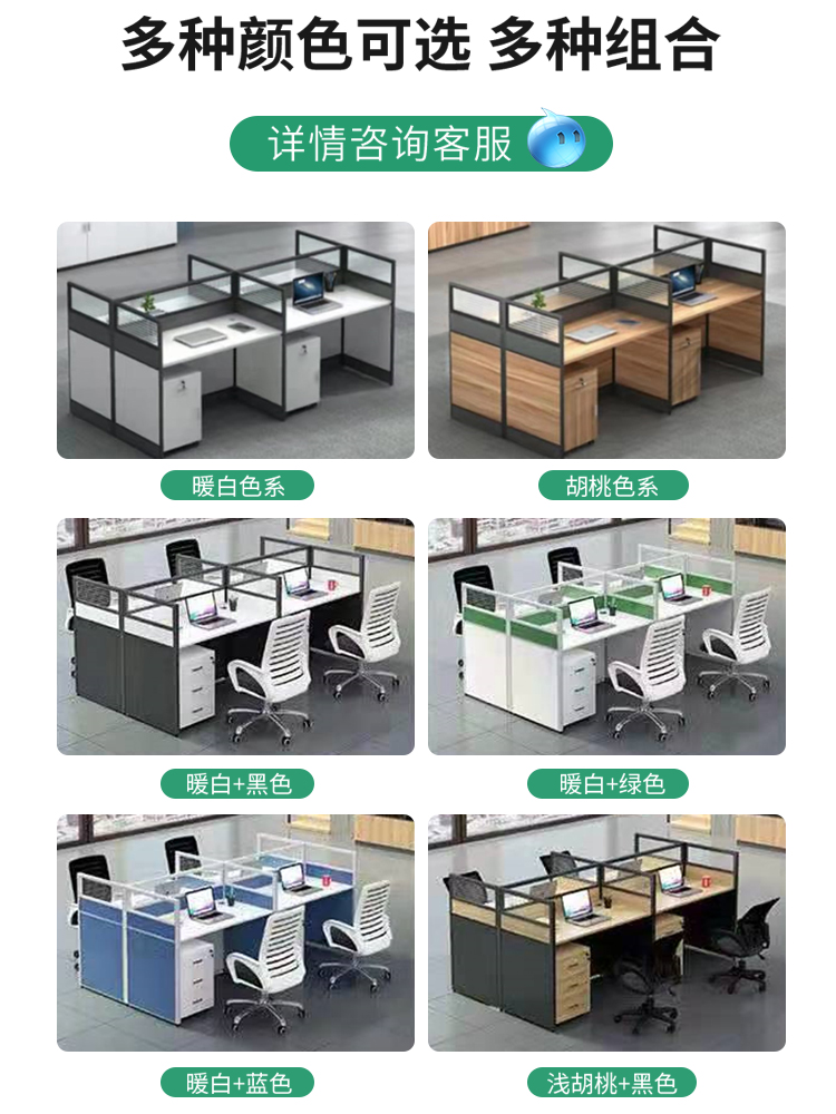 Single desk One-shaped single person (with cabinet) L-shaped single person (without cabinet) L-shaped single person (with cabinet) I-shaped two-person (without cabinet) I-shaped two-person (included Cabinet) E-shaped two persons (