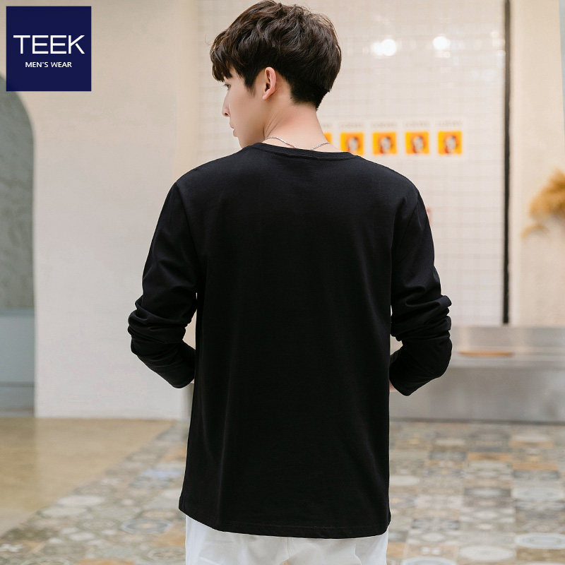 Teek long sleeves slim men's T shirt spring trend all-match pure cotton autumn clothes young Hong Kong trend men bottom shirt