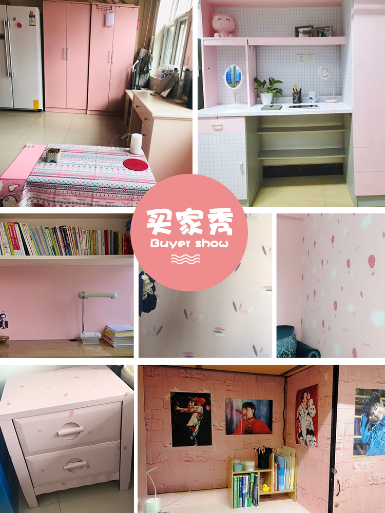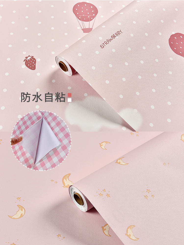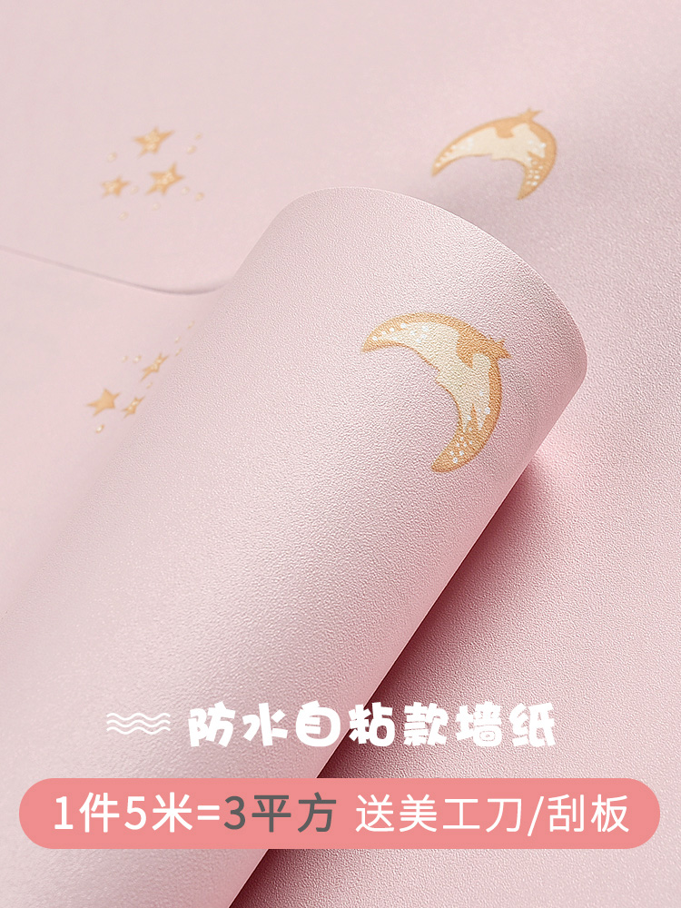 Wallpaper self-adhesive bedroom warm pink girl heart room wallpaper female college dormitory waterproof self-sticker