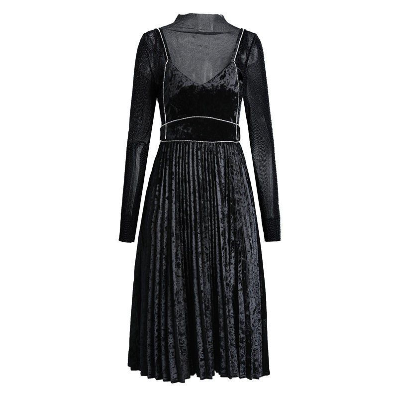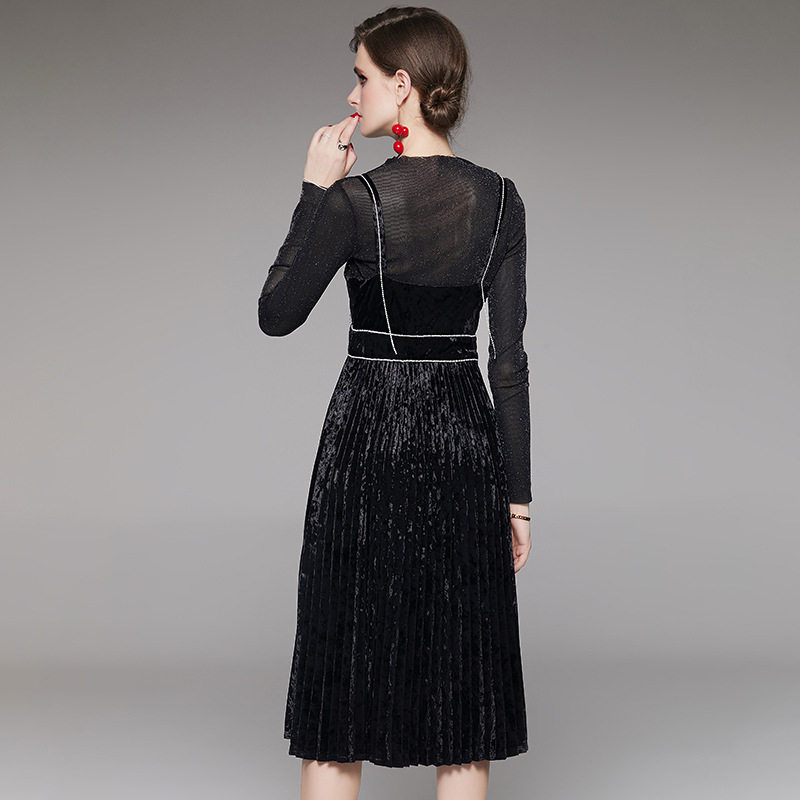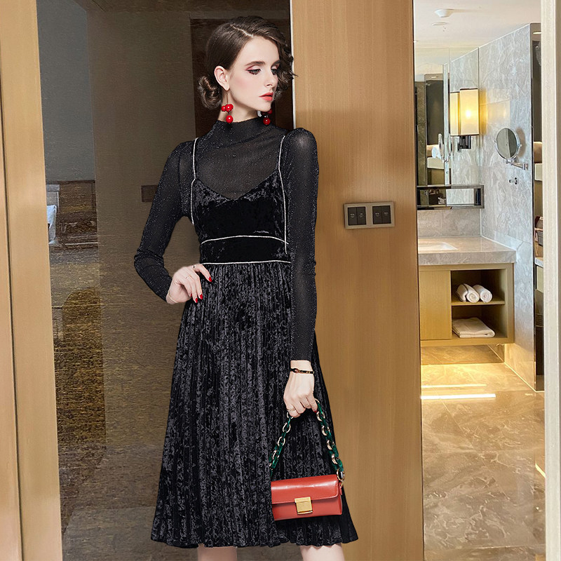 SANDRO SELEN autumn and winter velvet dress high waist black vintage mesh bottom HOLDING baby BAG SKIRT two-piece set