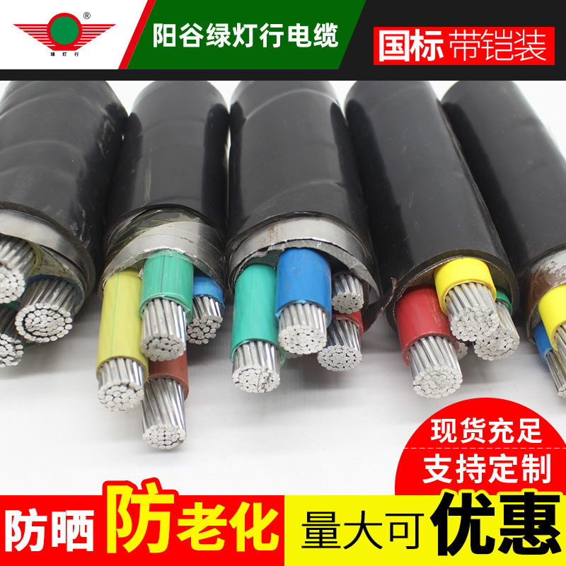 Green light line YJLV22 national flame retardant 4 core armored cable 10 16 25 35 50 70 square cable