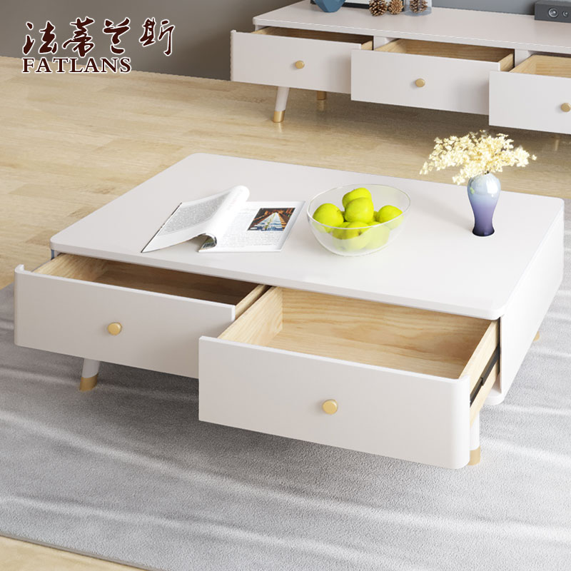 Pure solid wood 1 5 m 1 3 - 1 2 - 1 m 60cm pure white Nordic modern simple light luxury living room tea several large