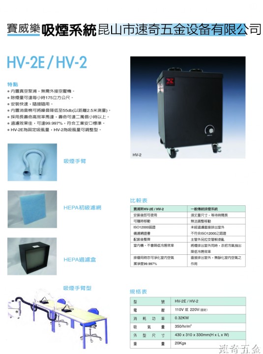 Taiwan Seiwei Suction Instrument HV-2E High Efficiency Pipeline Industry Level to Smoke Removal Air Vastness of Smoke Removal Air