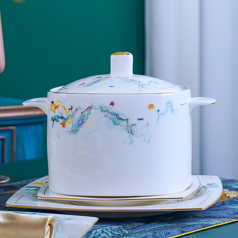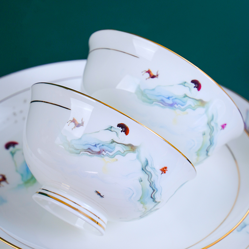 Bowl kit household bone porcelain edge luxury tableware dish dish European ceramic jo relocation gift