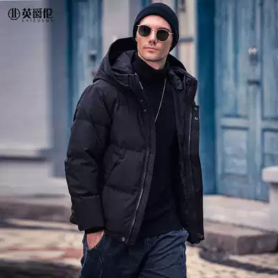 British Jue Lun 90 velvet winter men's down jacket 2021 New hooded men's white duck down jacket thick short