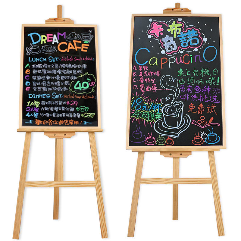 Wooden Blackboard Bracket Small Blackboard Shop Handwriting Billboard Advertising Blackboard Upright Home Teaching Training Erasable chalk magnetic writing tablet Remain board Floor Chalk Board Shelf