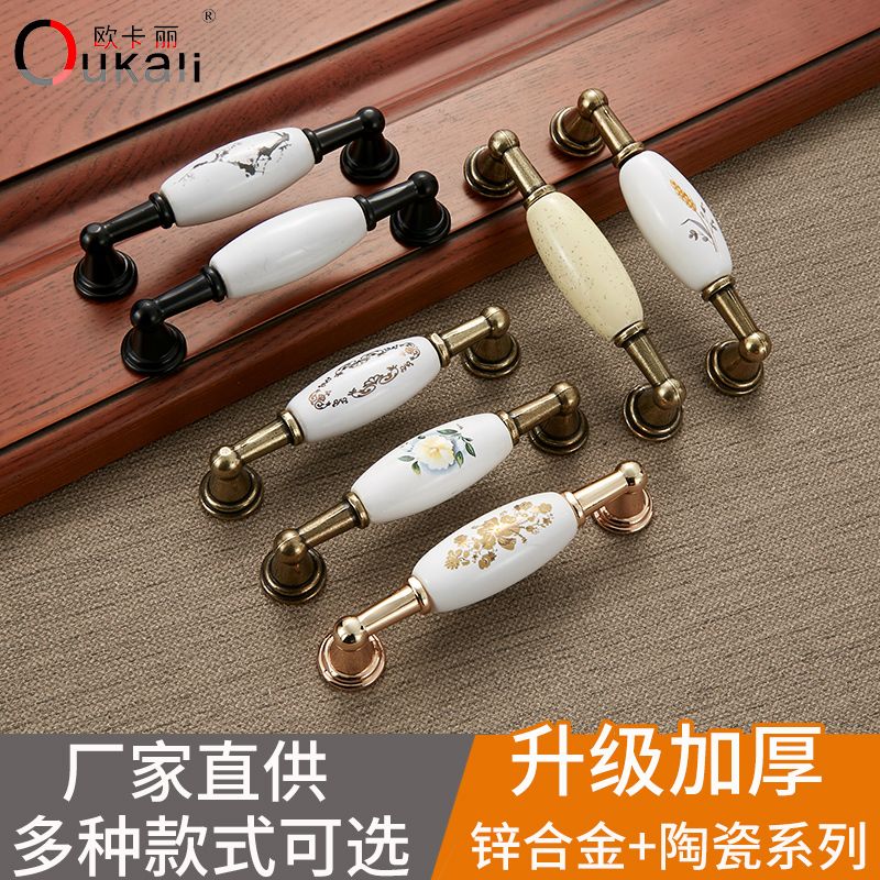 Black and white ceramic handle cabinet door modern simple high-end European wardrobe kitchen door overall cabinet open installation small single hole door handle