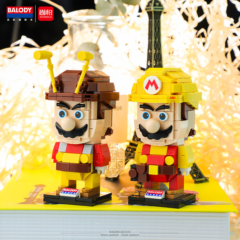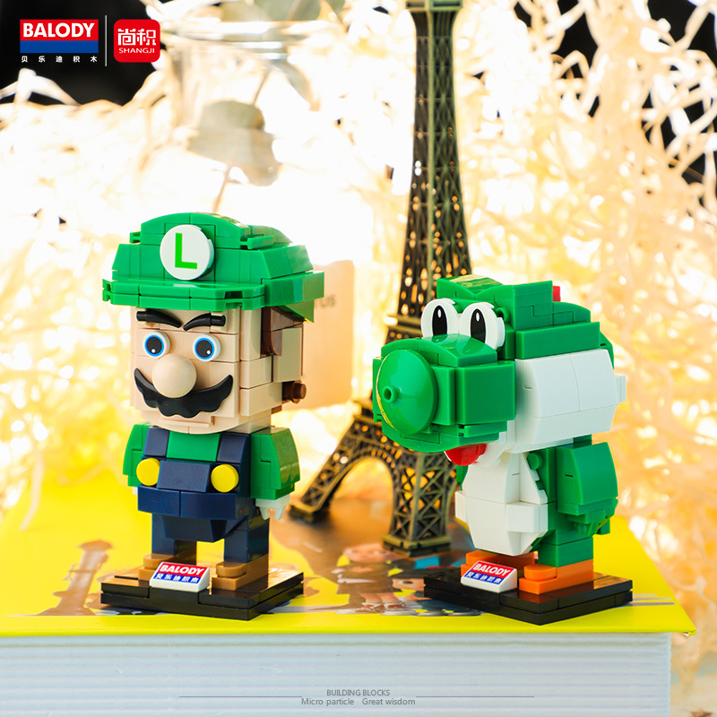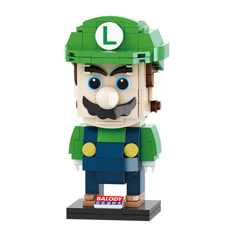 Super Malio Toy Malio Luigi Mini parquet square block square head doll swing piece assembly model