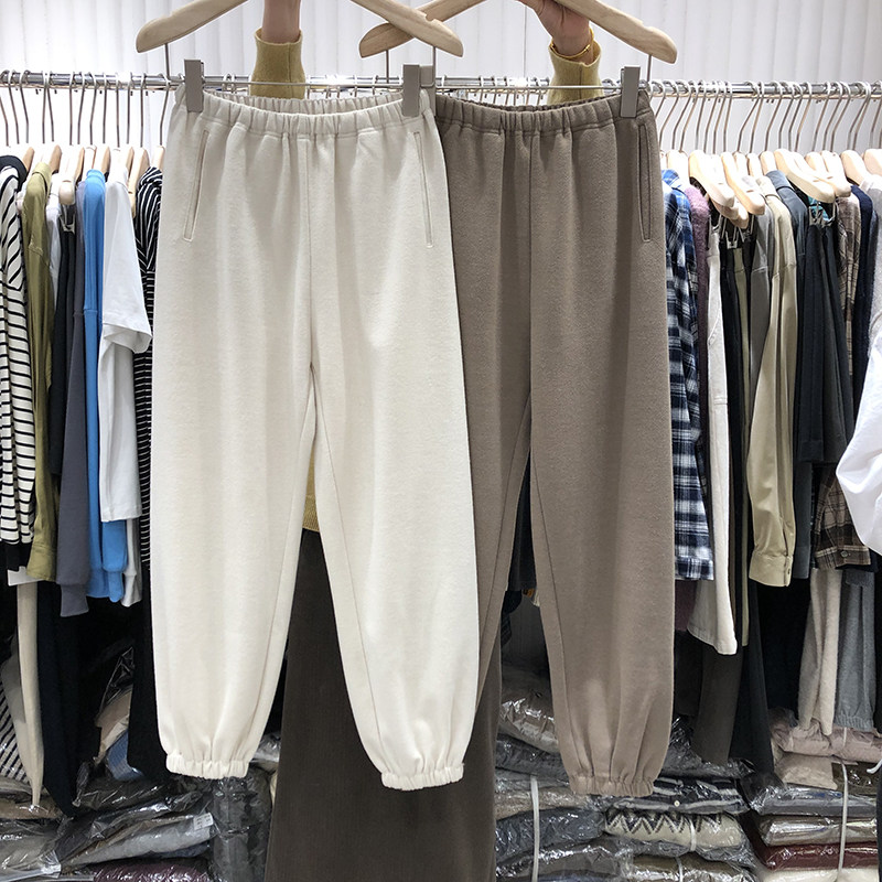 2022 autumn Winter High waist sports Leisure bunches Pants Women Loose slim straight drum Halen long fur Guard pants